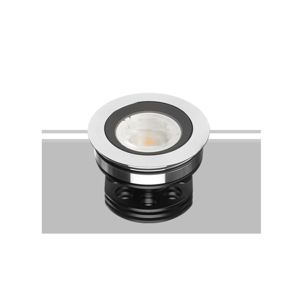 Ścienna oprawa podtynkowa IP67 o najwyższej jakości wykonania z diodami COB LED, niezwykle kompaktowa i wysoka wydajność świetlna. Całkowicie anodowana obudowa aluminiowa, wersje z przodem z odpornej na pojazdy samochodowe stali nierdzewnej AISI 316L lub z anodyzowanego, malowanego proszkowo aluminium, po którym można chodzić. Bardzo przezroczyste szkło hartowane, dławik kablowy ATEX, kabel neoprenowy. Rewolucyjny w rozpraszającym, funkcjonalnym projekcie, oferuje możliwość łączenia temperatur barwowych i kątów wiązki w wersjach CRI85 i CRI93. Może być wyposażony w filtr przeciwodblaskowy dla maksymalnego komfortu wizualnego.