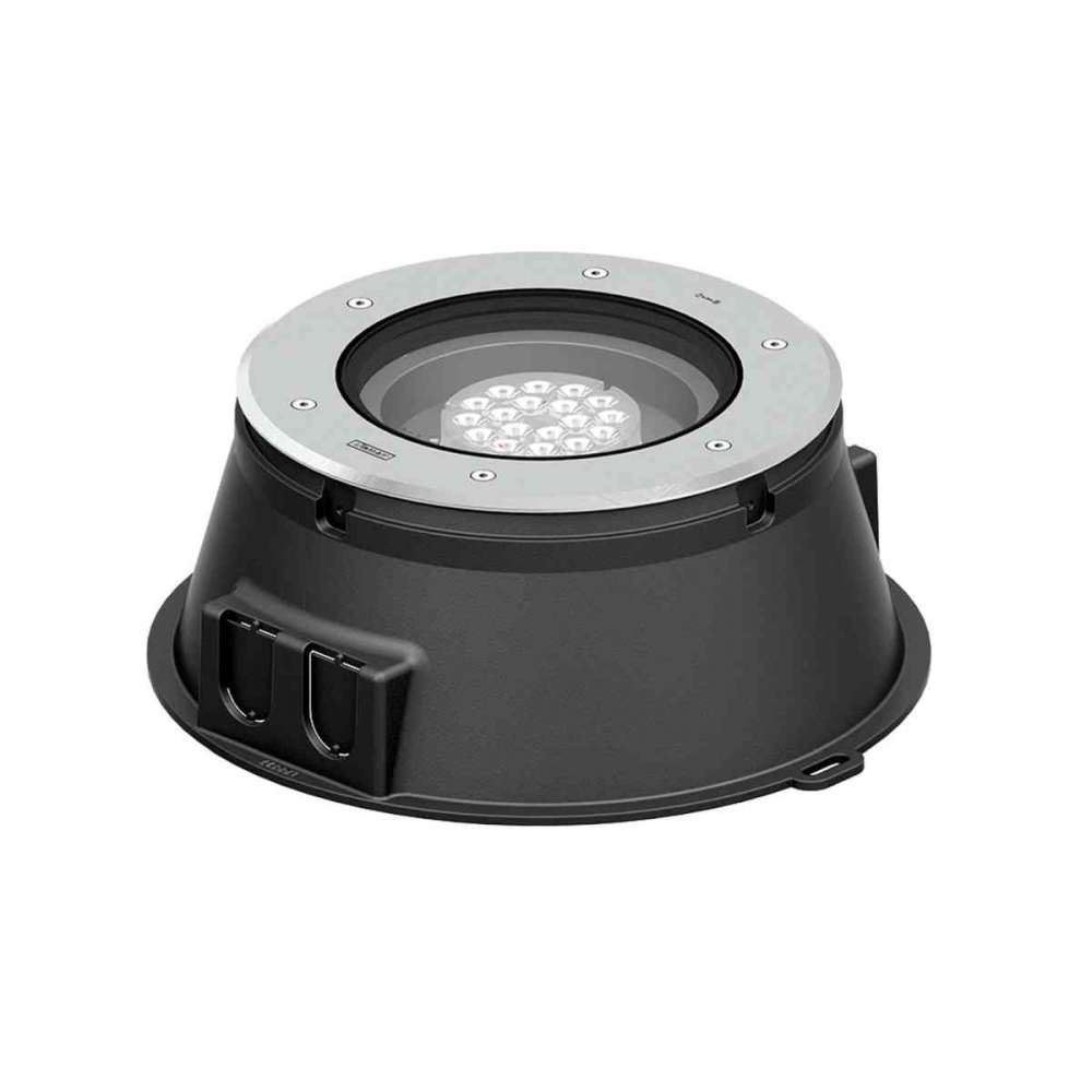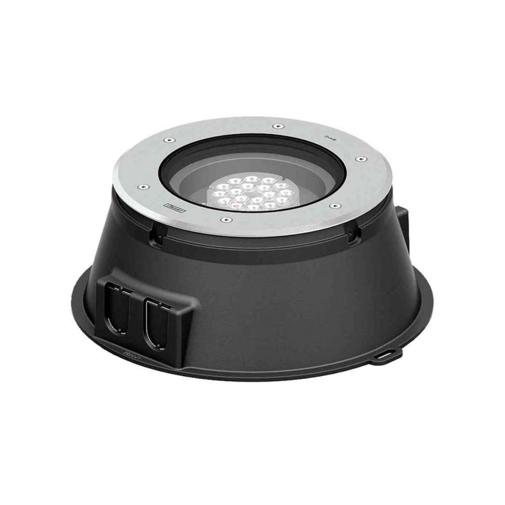 KIOS - Profesjonalne techniczne rozwiązania oświetlenia naziemnego. Wyrafinowana i ekspansywna: pojedyncza, dwulampowa, biała i RGBW DMX, z 10 rodzajami wiązki. Struktura oprawy : - Obudowa z odlewu aluminiowego - Wstęp -poddana obróbce przed malowaniem proszkowym zapewniająca wysoką odporność na korozję - Pierścień czołowy o grubości 5,5 mm ze stali nierdzewnej 316 - Pojedyncze wejście kablowe, na życzenie okablowanie przelotowe - Łączniki ze stali nierdzewnej w gat. 316 - Trwałe uszczelka z gumy silikonowej - Wysokowydajny klosz z PMMA - Przezroczyste lub matowe szkło hartowane - Zintegrowany osprzęt - W zestawie puszka montażowa z polietylenu o wysokiej gęstości - Nadaje się do najazdu o maksymalnym obciążeniu 2000 kg - Pojazdy z oponami pneumatycznymi mogą przejeżdżać przez oprawę, ale prędkość nie może przekraczać 50 km/h - Obciążenie przenoszone jest przez obudowę na fundament - Odległość między naświetlacz i oświetlana powierzchnia powinny mieć co najmniej 0,5 m Informacje techniczne : - Lampa: LED - CCT / CRI: 3000K CRI80, 4000K CRI80 - RGBW30 , RGBW40 - Typ ściemniania: DALI, 1-10V, On/Off - DMX/RDM Model : KI-60568 : Z puszką podtynkową / sterownikiem - Ramka wypukła - RGBW KI-60771 : Z puszką wpuszczaną / sterownikiem - Ramka do wytłaczania - Regulowana: Nachylenie 5° lub 10° (2 stopnie) KI-60775 : Z puszką do wbudowania / sterownikiem - Ramka do wytłaczania - Regulowana: Nachylenie 5° lub 10° (2 stopnie)Odbiorca: :