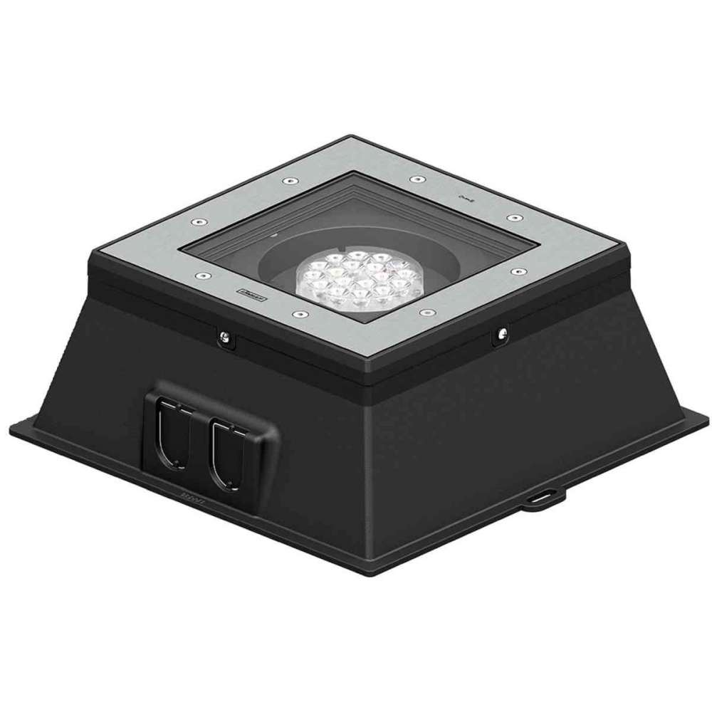 KIOS - Profesjonalne techniczne rozwiązania oświetlenia naziemnego. Wyrafinowana i ekspansywna: pojedyncza, dwulampowa, biała i RGBW DMX, z 10 rodzajami wiązki. Struktura oprawy : - Obudowa z odlewu aluminiowego - Wstęp -poddana obróbce przed malowaniem proszkowym zapewniająca wysoką odporność na korozję - Pierścień czołowy o grubości 5,5 mm ze stali nierdzewnej 316 - Pojedyncze wejście kablowe, na życzenie okablowanie przelotowe - Łączniki ze stali nierdzewnej w gat. 316 - Trwałe uszczelka z gumy silikonowej - Wysokowydajny klosz z PMMA - Przezroczyste lub matowe szkło hartowane - Zintegrowany osprzęt - W zestawie puszka montażowa z polietylenu o wysokiej gęstości - Nadaje się do najazdu o maksymalnym obciążeniu 2000 kg - Pojazdy z oponami pneumatycznymi mogą przejeżdżać przez oprawę, ale prędkość nie może przekraczać 50 km/h - Obciążenie przenoszone jest przez obudowę na fundament - Odległość między naświetlacz i oświetlana powierzchnia powinny mieć co najmniej 0,5 m Informacje techniczne : - Lampa: LED - CCT / CRI: 3000K CRI80, 4000K CRI80 - RGBW30 , RGBW40 - Typ ściemniania: DALI, 1-10V, On/Off - DMX/RDM Model : KI-60598 : Z puszką podtynkową / sterownikiem - Rama płaska - RGBW KI-60801 : Z puszką wpuszczaną / sterownikiem - Płaska rama - Regulowany: Nachylenie 5° lub 10 ° (2 stopnie) KI-60805 : Z puszką wpuszczaną / sterownikiem - Płaska rama - Regulowany: Nachylenie 5° lub 10° (2 stopnie)Odbiorca: :