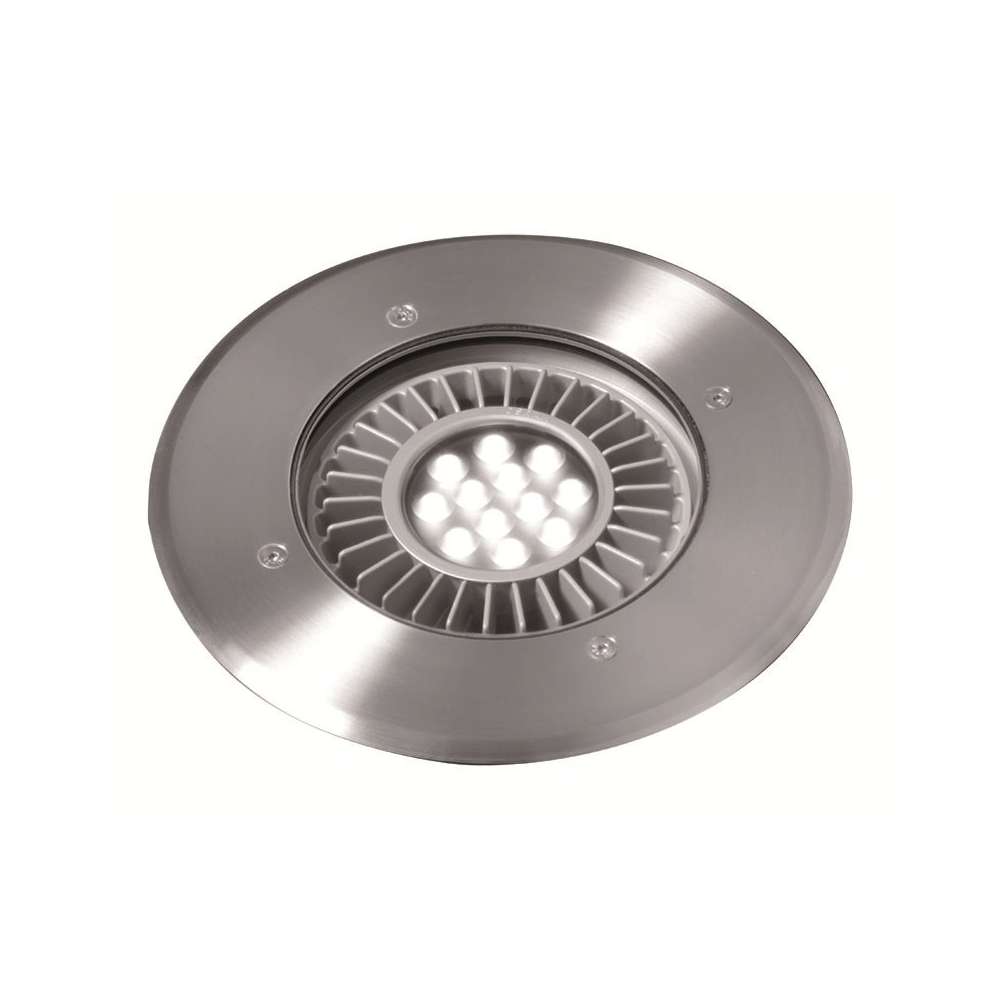 Podziemna wpuszczana oprawa LED wysokiej mocy do umieszczenia wewnątrz albo na zewnątrz. Oprawa ta wytrzymuje wysokie ciśnienie do 1500 kg. Niezwykle wytrzymała konstrukcja, ten spot LED o dużej mocy jest dostępny ze stałym lub regulowanym uchwytem lampy. Ta wysokiej jakości oprawa jest wytwarzana w procesie obróbki skrawaniem. Korpus jest z anodyzowanego aluminium, a pokrywa ze szczotkowanego mosiądzu lub ze stali nierdzewnej 316L o grubości 4 mm.
