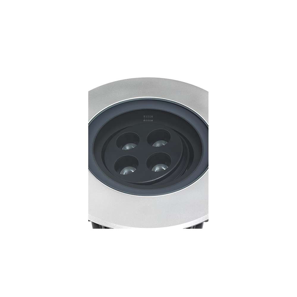 Do wbudowania do zastosowań zewnętrznych (nie nadaje się do stosowania w basenach lub fontannach); najazd do 5000 kg; wpuszczany (podłoga); Moc: 25W; Zasilanie: 230Vac; Strumień świetlny u źródła: 2322 lm (3000K, CRI 80), 1857 lm (3000K, CRI 90); Dostarczony strumień świetlny: 1350 lm (3000K, 30°, CRI 80), 1080 lm (3000K, 30°, CRI 90); 4 diody LED dużej mocy, 3-stopniowe MacAdam, 50 000h L85 B10 (Ta 25°C); kolor LED: 2700K, 3000K, 4000K; Optyka: 11°, 14°, 30°, 37°, 10°x45°; CRI: 80, 90; Materiał korpusu: korpus z odlewanego ciśnieniowo aluminium, wykończenie ze stali nierdzewnej AISI 316L; Wykończenia: stal nierdzewna mikropiaskowana; Materiał ekranu: ekran z serigrafowanego, hartowanego, przezroczystego, bardzo przezroczystego szkła; Stopień ochrony: IP67 ze specjalnie zaprojektowaną obudową zewnętrzną, IP68 ze specjalnie zaprojektowaną obudową zewnętrzną, IP69K; Odporność na uderzenia: IK10; ręczna regulacja optyki: ±10° na osi z, ±30° na osi x; Systemy ochrony: IPS (Inteligentny System Ochrony); PID (urządzenie impedancji ochronnej); SPD (urządzenie przeciwprzepięciowe); Klasa urządzenia: I; Waga: 5000g; Wymiary: Ø290x138 mm