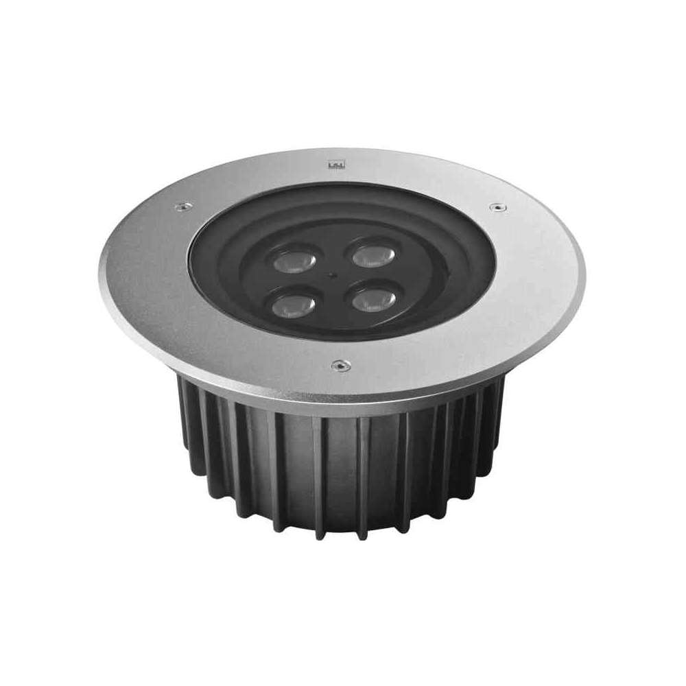Oprawa do wbudowania do zastosowań zewnętrznych; najazd do 5000 kg; wpuszczany (grunt); korpus z odlewanego ciśnieniowo aluminium, wykończenie ze stali nierdzewnej AISI 316L, ekran ze szkła hartowanego; wykończenie: mikropiaskowanie; 4 diody LED mocy o wysokiej intensywności; 25W - 230Vac; zawiera przewód neoprenowy 1,5 m, H07RN-F 3x1,0 Ø9,3 mm; dostarczony strumień świetlny: 1395 lm (3000K, 30°, CRI 80), 1116 lm (3000K, 30°, CRI 90); optyka: 14°, 30°, 37°, 10°x45° (regulacja motoryczna ±10° we wszystkich kierunkach); kolor LED: biały - 2700K, 3000K, 4000K; wersje CRI 80 i CRI 90; stopień ochrony: IP67 ze specjalnie zaprojektowaną obudową zewnętrzną, IP68 ze specjalnie zaprojektowaną obudową zewnętrzną, IP69K; odporność na uderzenia: IK10; wyposażony w IPS, SPD, PID; temperatura pracy: -20°C+45°C; temperatura ekranu: max 40°C (Ta 25°C); Test rozżarzonego drutu: 960°; bezpieczeństwo fotobiologiczne: grupa ryzyka 1 zgodnie z EN62471:2006; klasa urządzenia: I; waga 5,00 kg; wymiary nadwozia Ø290x138 mm; całkowita objętość Ø660x265 mm; akcesoria: obudowa zewnętrzna (IP67) WC5610, obudowa zewnętrzna (IP68) WC5611, raster o strukturze plastra miodu WH0610, zestaw śrub przeciwsabotażowych WE0202, śrubokręt do śrub przeciwsabotażowych WE0203, pilot na podczerwień TLC07.