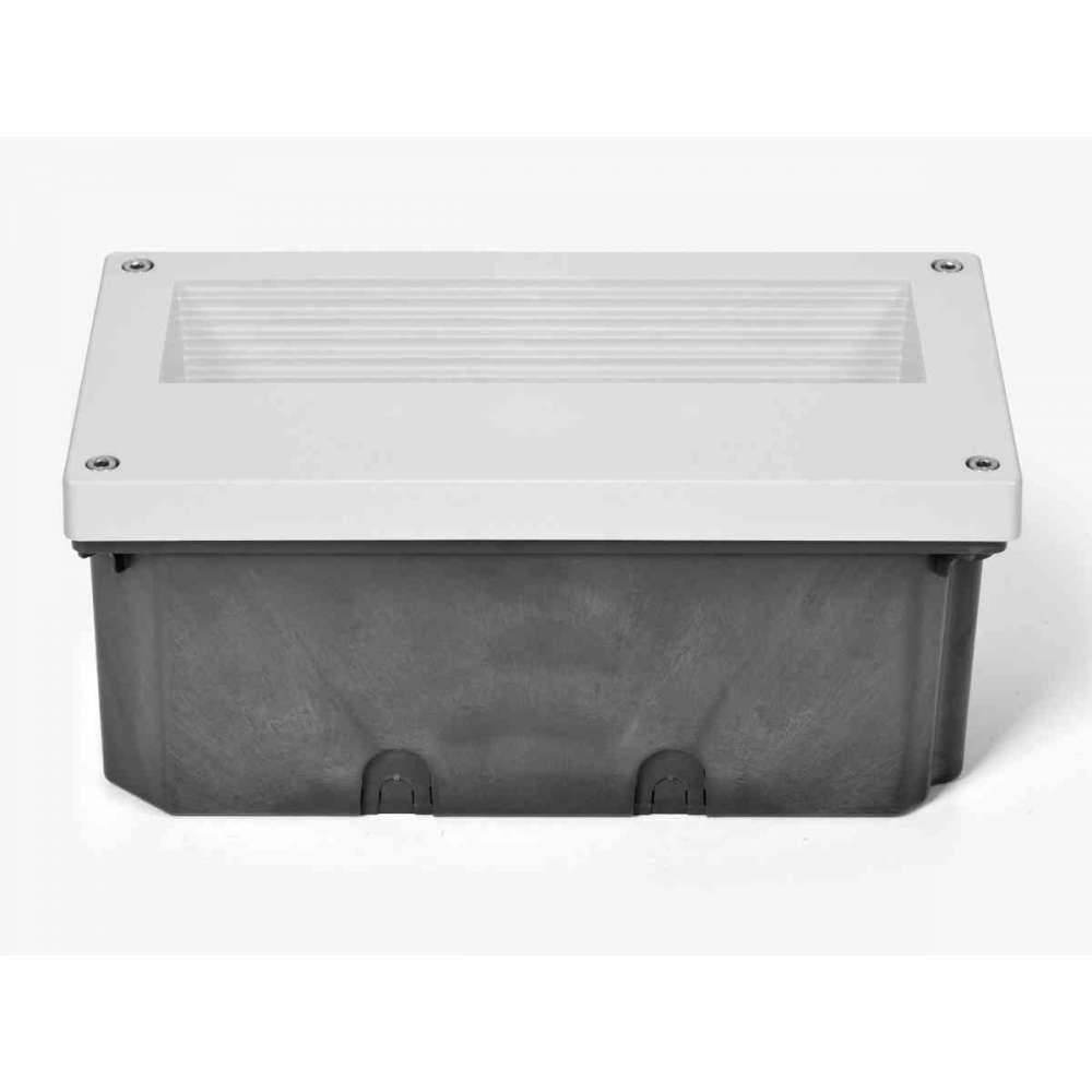 Naścienna oprawa LED IP65 z korpusem z odlewanego ciśnieniowo aluminium EN AB 44100. Szkło hartowane mikropryzmatyczne 3 mm. Śruby zewnętrzne ze stali nierdzewnej i silikonowa uszczelka. Malowane proszkowo wykończenie i obudowa montażowa z polipropylenu (PP).