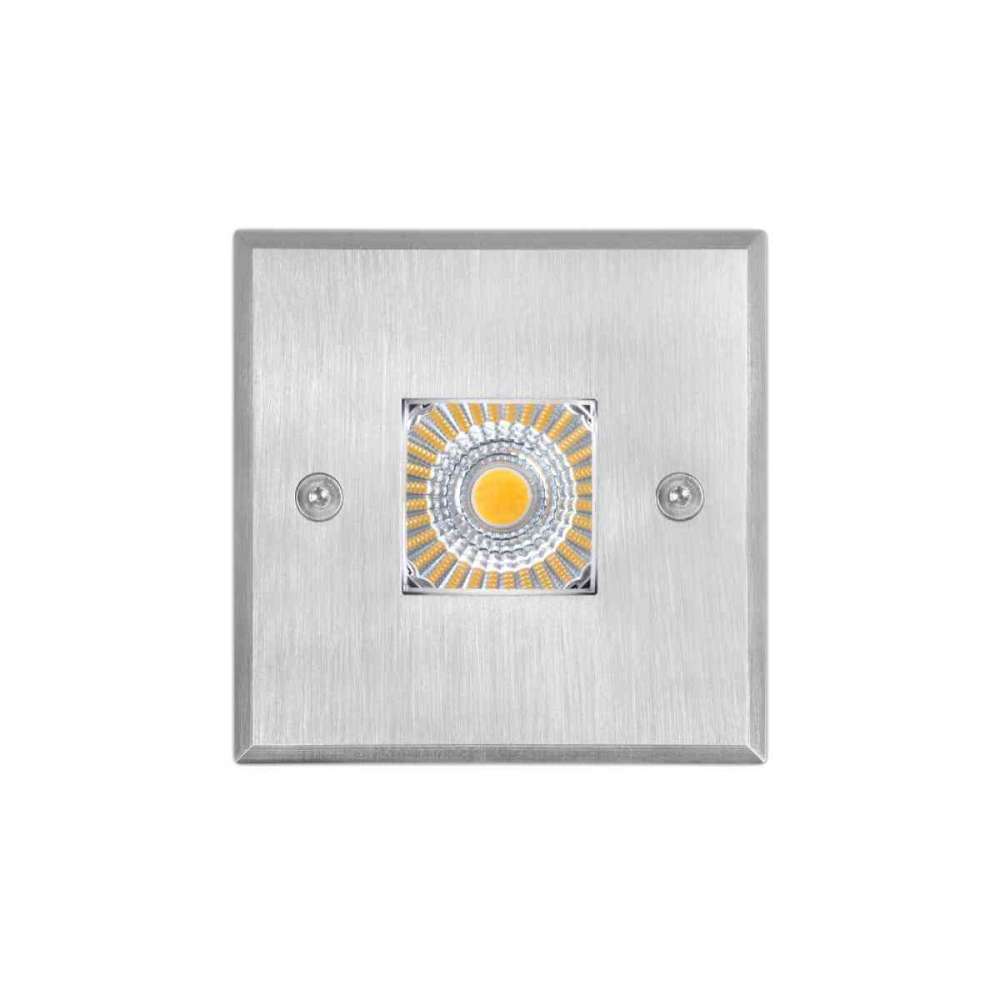 Kwadratowa oprawa LED do wbudowania IP67 z korpusem z odlewanego ciśnieniowo aluminium EN AB 44100 i ramą ze stali nierdzewnej AISI 316L o grubości 2 mm. 8mm przezroczyste szkło hartowane. Śruby zewnętrzne ze stali nierdzewnej i silikonowa uszczelka. Obudowa instalacyjna z polipropylenu (PP). Dławik kablowy M16 Ø 5/10mm z kablem o długości 0,5m.