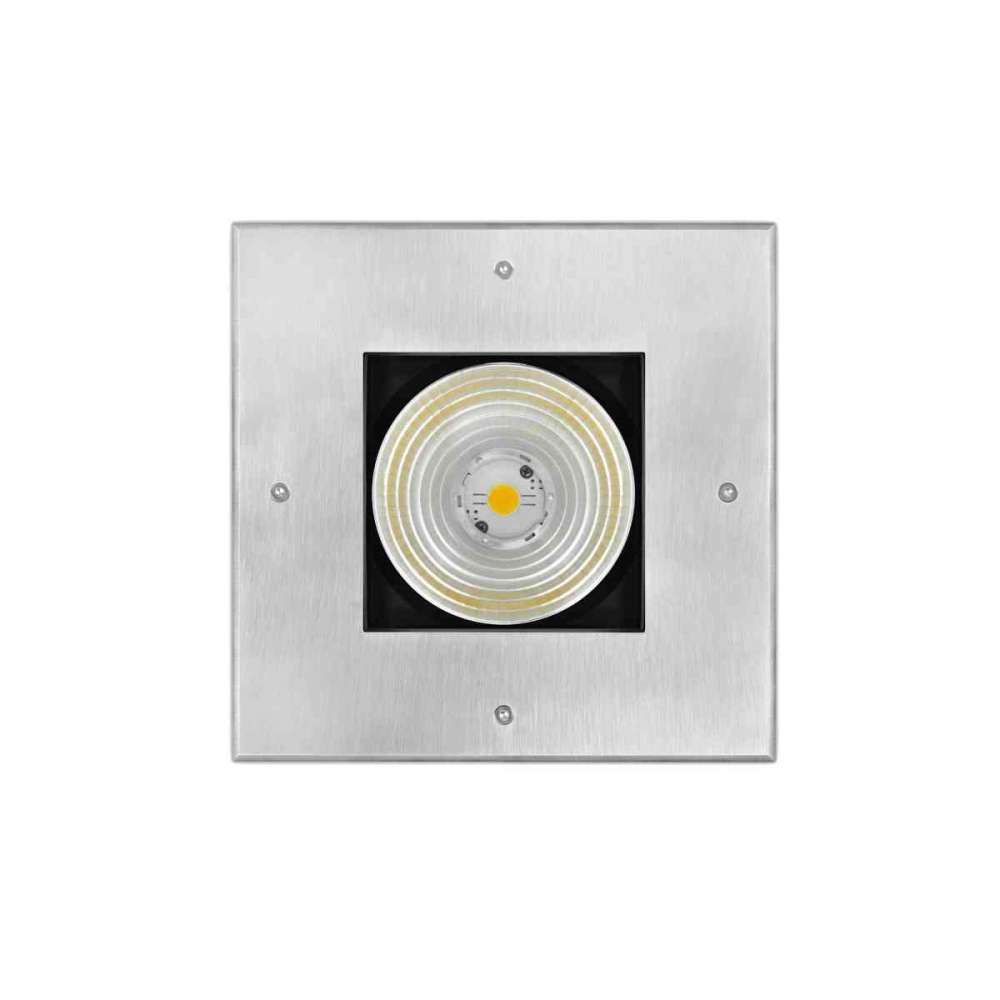 Wpuszczana kwadratowa dioda LED IP67 do zabudowy z korpusem z odlewu aluminiowego EN AB 44100 i ramą ze stali nierdzewnej AISI 316L o grubości 2 mm. Przezroczyste szkło hartowane 15 mm. Śruby zewnętrzne ze stali nierdzewnej i silikonowa uszczelka. Obudowa instalacyjna z polipropylenu (PP). Dławik kablowy M20 Ø 7/13 mm z kablem o długości 0,5 m H07RN8-F.