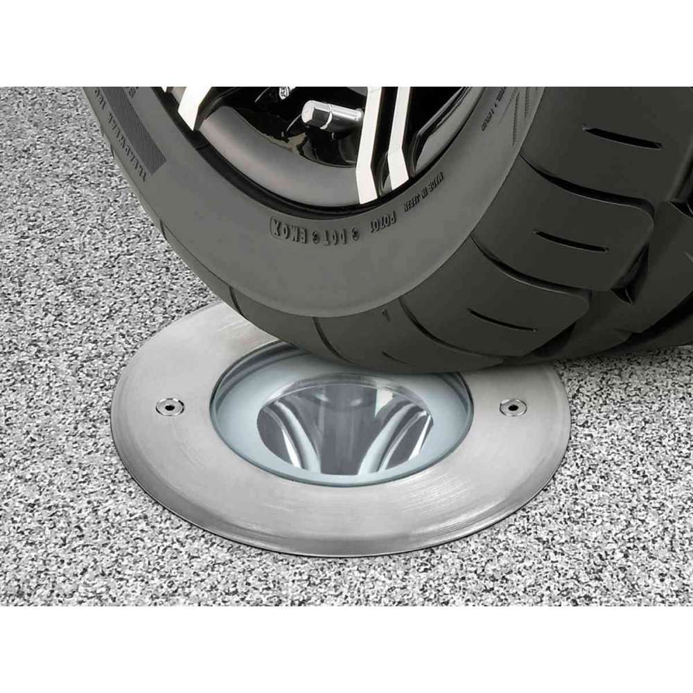 Wpuszczana okrągła oprawa LED do wbudowania IP67 z korpusem z odlewanego ciśnieniowo aluminium EN AB 44100 i pierścieniem ze stali nierdzewnej AISI 316L o grubości 2 mm. 12mm przezroczyste szkło hartowane. Śruby zewnętrzne ze stali nierdzewnej i silikonowa uszczelka. Obudowa instalacyjna z polipropylenu (PP). Dławik kablowy PG 13.