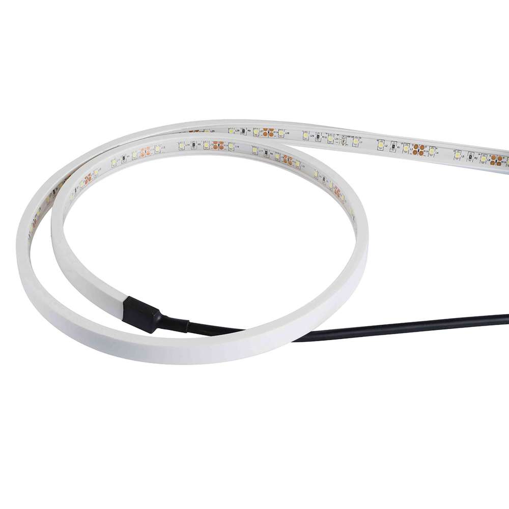 RIGA to rodzina produktów z wyborem elastycznych taśm LED do użytku zewnętrznego, szczególnie nadających się do oświetlenia dekoracyjnego. Riga składa się z taśmy LED 12V osadzonej w białym profilu PCV i zamkniętej w przezroczystej żywicy poliuretanowej, wyjątkowo odpornej na wszelkie warunki pogodowe io doskonałej stabilności na promienie UV. Wersja z przezroczystej żywicy emituje światło przednie.