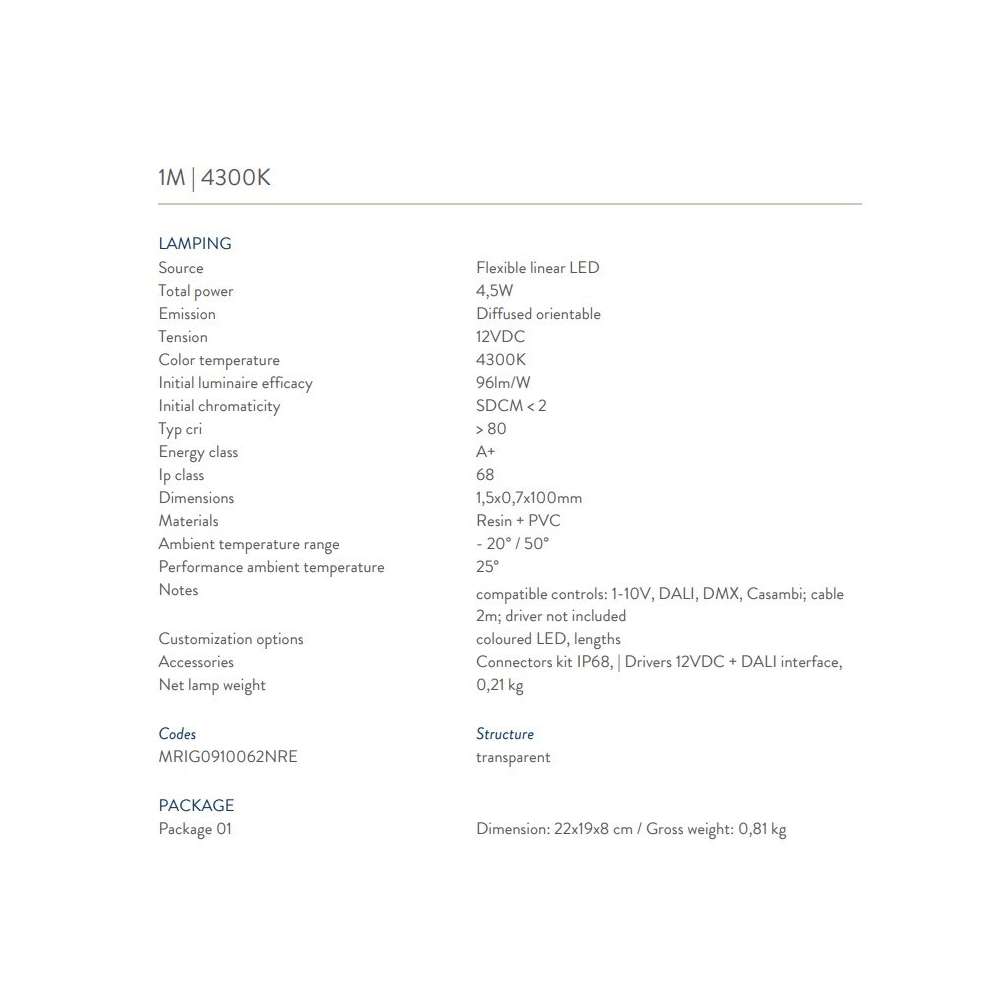 - 1m | Całkowita moc 8,5W | Strumień świetlny 700lm | 3000K | Napięcie 12VDC | Typ cri> 80 | Klasa energetyczna A +