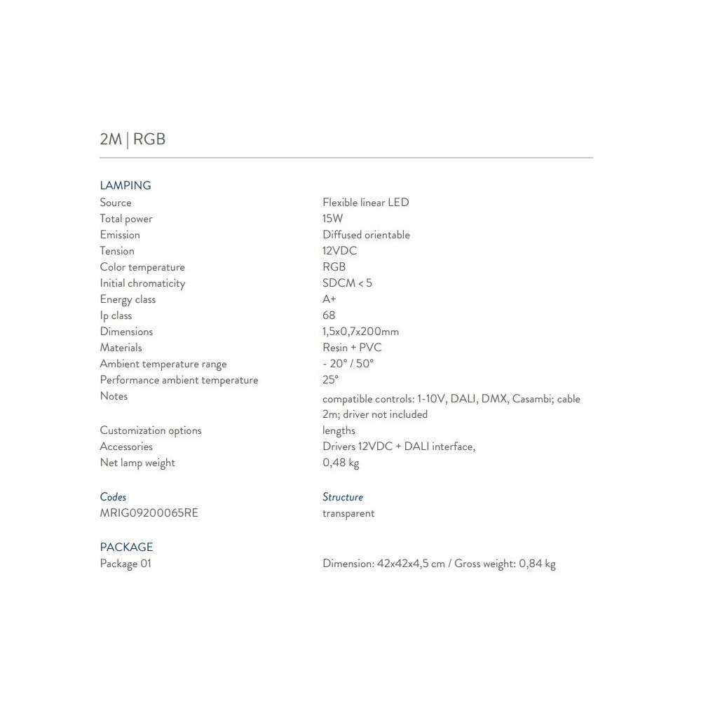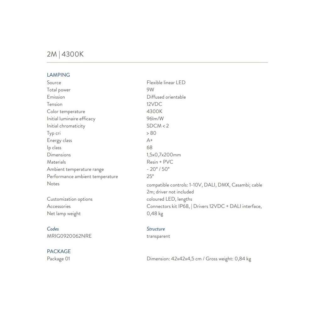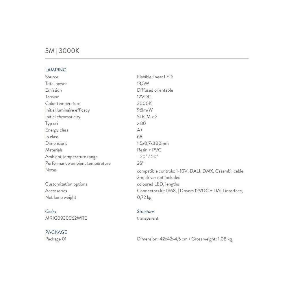 - 2m | Całkowita moc 17W | 3000K | Napięcie 12VDC | Typ cri> 80 | Klasa energetyczna A +
