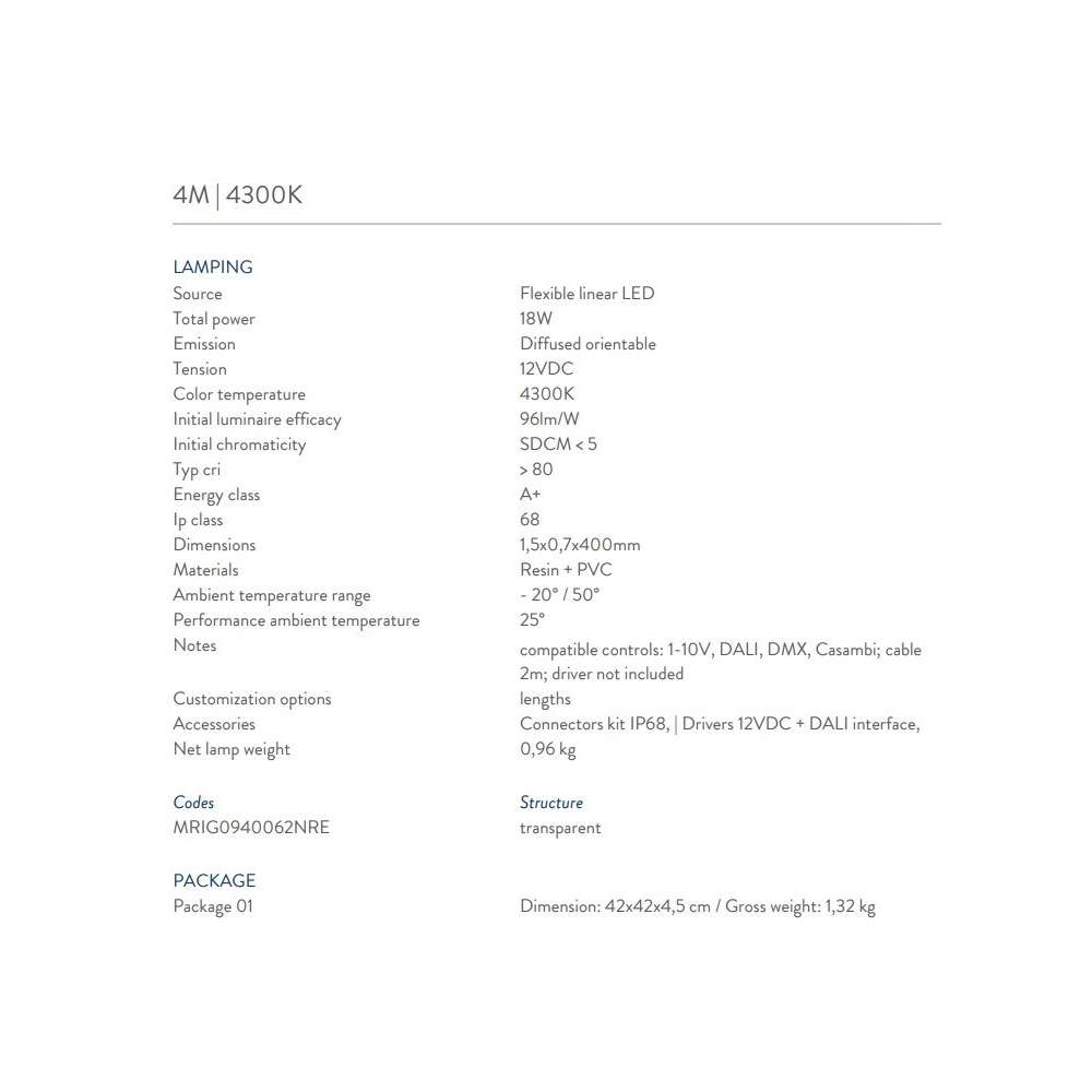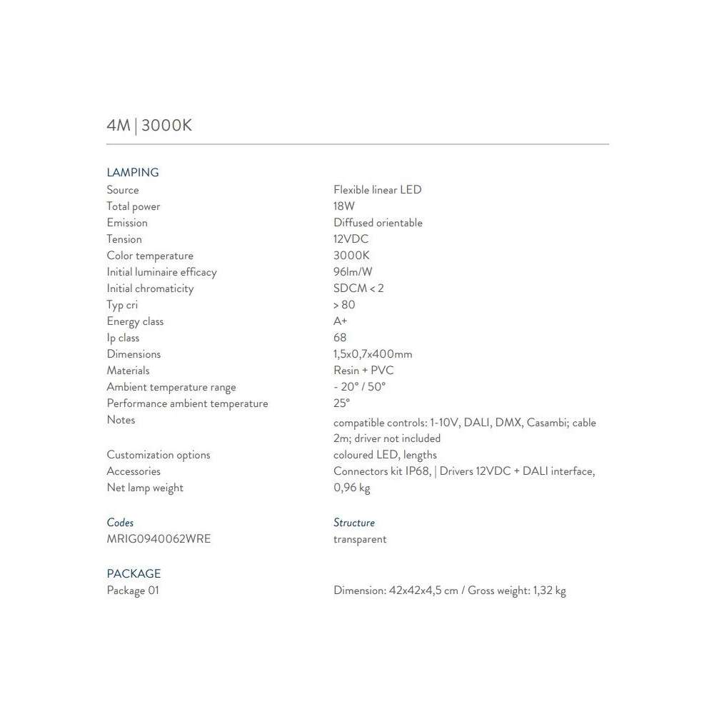 - 4m | Całkowita moc 34W | 3000K | Napięcie 12VDC | Typ cri> 80 | Klasa energetyczna A +