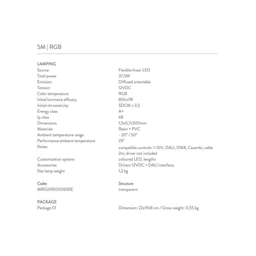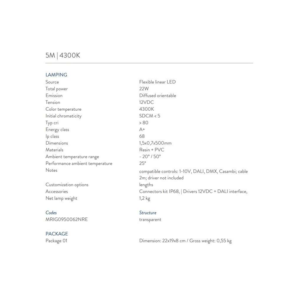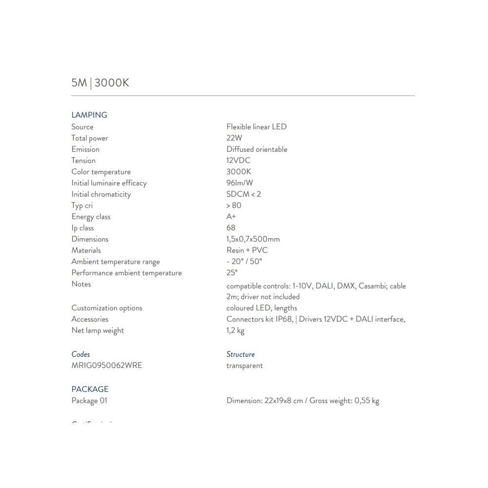- 5m | Całkowita moc 42,5W | 3000K | Napięcie 12VDC | Typ cri> 80 | Klasa energetyczna A+