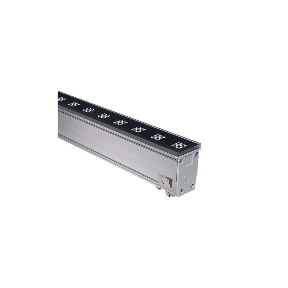 Profil liniowy do zastosowań zewnętrznych, najazd do 2000 kg; wpuszczany (ściana, ziemia); korpus ze stopu aluminium anodowanego EN AW 6060, ekran z hartowanego, przezroczystego szkła; 40 diod LED mocy (10 diod LED mocy 4000K, 30 diod LED mocy RGB); 30W - 48Vdc+DMX 512; zawiera 1,5 m kabla neoprenowego, m H07RN-F 2x1,0 Ø8,7 mm i 2x1,5 m kabla neoprenowego, 05RN-F 4x0,50 Ø5,8 mm; dostarczony strumień świetlny: 2310 lm (R: 470 lm, G: 730 lm, B: 270 lm, W: 840 lm; 4000 K, 33°); optyka: 13°, 33°, 47°; kolor diody: RGBW; stopień ochrony: IP67; odporność na uderzenia: IK09; wyposażony w IPS; temperatura pracy: -20°C+45°C; temperatura ekranu: max 40°C (Ta 25°C); Test rozżarzonego drutu: 960°; bezpieczeństwo fotobiologiczne: grupa ryzyka 1 zgodnie z EN62471:2006; klasa urządzeń: III; waga 3,35 kg; wymiary 500x56x116 mm; akcesoria: obudowa zewnętrzna WC6050