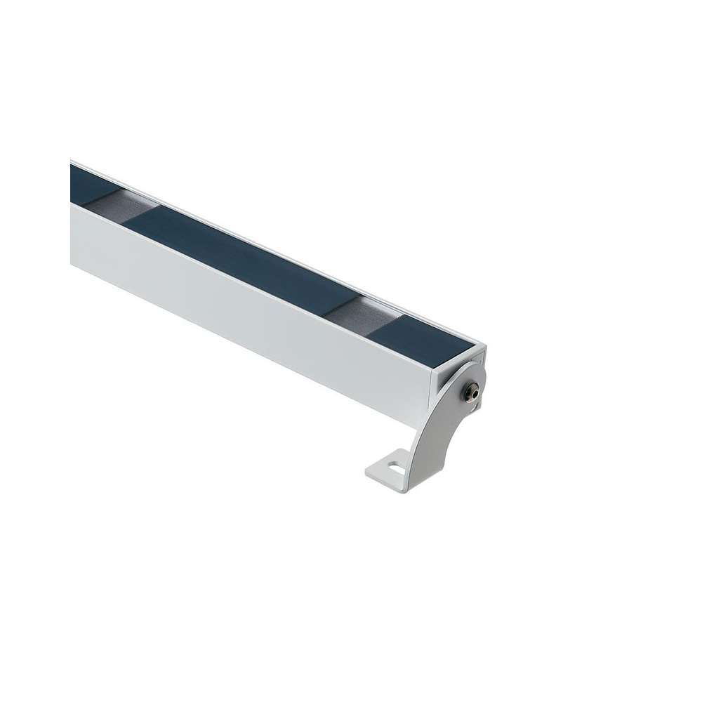 Profil liniowy do zastosowań wewnętrznych; montowane na powierzchni (sufit, ściana, podłoga); korpus z anodyzowanego wytłaczanego stopu aluminium EN AW 6060, ekran z pleksiglasowanej serigrafii; wykończenia: anodowane aluminium, białe; 12 grup RGB raster 120 mm; 40W - 24Vdc; zawiera 0,50 m kabel PVC, 1,5 m FROR 4x0,50 Ø5 mm; łączne dostarczone lumeny: R: 304 lm, G: 916 lm, B: 612 lm; optyka: 18°, 26°, 32°, 22°x42°; kolor diody: RGB; stopień ochrony: IP40; temperatura pracy: 0°C +45°C; temperatura ekranu: max 30°C (Ta 25°C); Test rozżarzonego drutu: 730°; bezpieczeństwo fotobiologiczne: grupa ryzyka 1 zgodnie z EN62471:2006; klasa urządzeń: III; waga 1,10 kg; wymiary 1243x40x27 mm