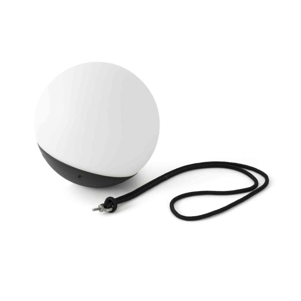 VOILA to zabawna przenośna konstrukcja do oświetlenia zewnętrznego. Ten dyfuzor światła ma okrągły kształt, a dzięki różnym akcesoriom można go przekształcić w lampę wiszącą, lampę stołową lub lampę słupkową. Można również zmienić kolor wiązki światła i wybrać biały, niebieski, zielony lub czerwony. Jest ładowany za pomocą kabla USB (w zestawie) i ma 7 godzin autonomii. Pełne ładowanie trwa 10 godzin.