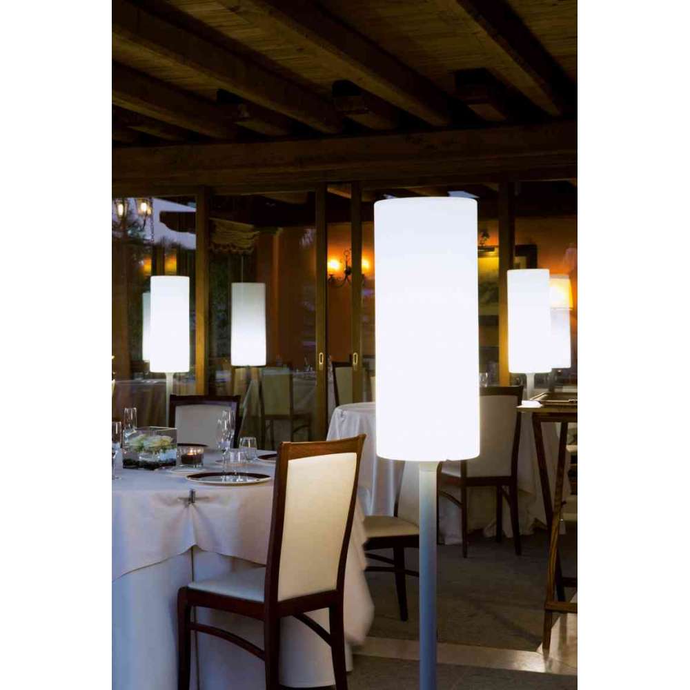 Lampa podłogowa o charakterystycznym designie, może służyć do tworzenia konkretnych scenografii i niebanalnych. Dostępne dwie wersje sprawiają, że nadaje się ona zarówno do tworzenia określonych ustawień na zewnątrz, jak i do tworzenia bardziej kreatywnych przestrzeni wewnętrznych jako pokojów recepcyjnych.