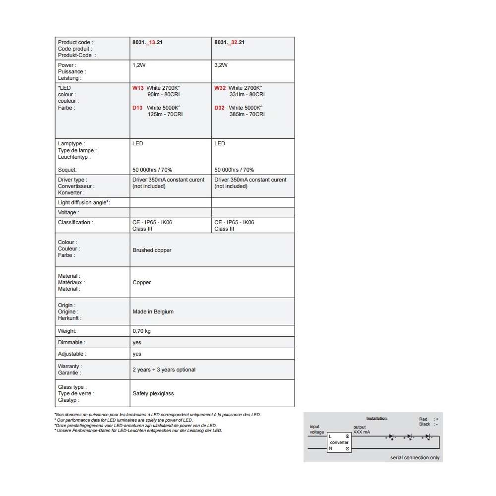SAMI | Oryginalna mała miedziana wodoodporna IP65 z możliwością orientacji/elastycznego reflektora/słupka/oświetlenia naziemnego LED z kablem 1M i mocowaniem do podłoża Bardzo mała oprawa zewnętrzna wykonana w całości z miedzi, SAMI ma całkowicie elastyczny trzon zapewniający wiele możliwych orientacji, aby idealnie pasować wszystkie Twoje potrzeby oryginalności. Zaprojektowany do wbicia w ziemię w środku natury, aby idealnie pasował do Twojego ogrodu, może być również dostarczony na życzenie w postaci pojedynczej lub wielokrotnej płyty montażowej, która następnie umożliwia sztywne mocowanie do podłoża, ale także do ściany lub sufit. Dzięki niskiemu poborowi mocy oraz zintegrowanej diody LED 3,2W - 350mA jest to oprawa ekologiczna o minimalnym wpływie na środowisko. SAMI jest idealnym rozwiązaniem do tworzenia wnętrz dekoracyjnych, oświetlenia ścieżki lub innej instalacji zewnętrznej. OPIS: Korpus wykonany z miedzi Stopień ochrony IP65 - IK06 Bezpieczeństwo piaskowana pleksi Led 350mA wbudowany Dostarczany z kołkiem do mocowania do podłoża - Ecopic Dostarczany z kablem o długości 1 m Klasa energetyczna EC: A+ AKCESORIA: Zasilacz LED 350mA CC (brak w zestawie) LED: D13 1,2W - 5000K D32 3,2W - 5000K W13 1,2W - 2700K W32 3,2W - 2700K KOLOR: 21 Miedź szczotkowanaOdbiorca: :