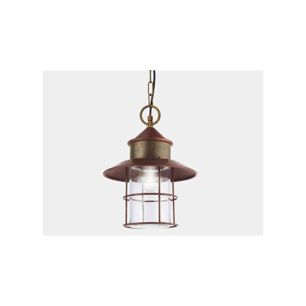 GRANAIO 246.07.ORT to zewnętrzna lampa wisząca z mosiądzu, miedzi i szkła.