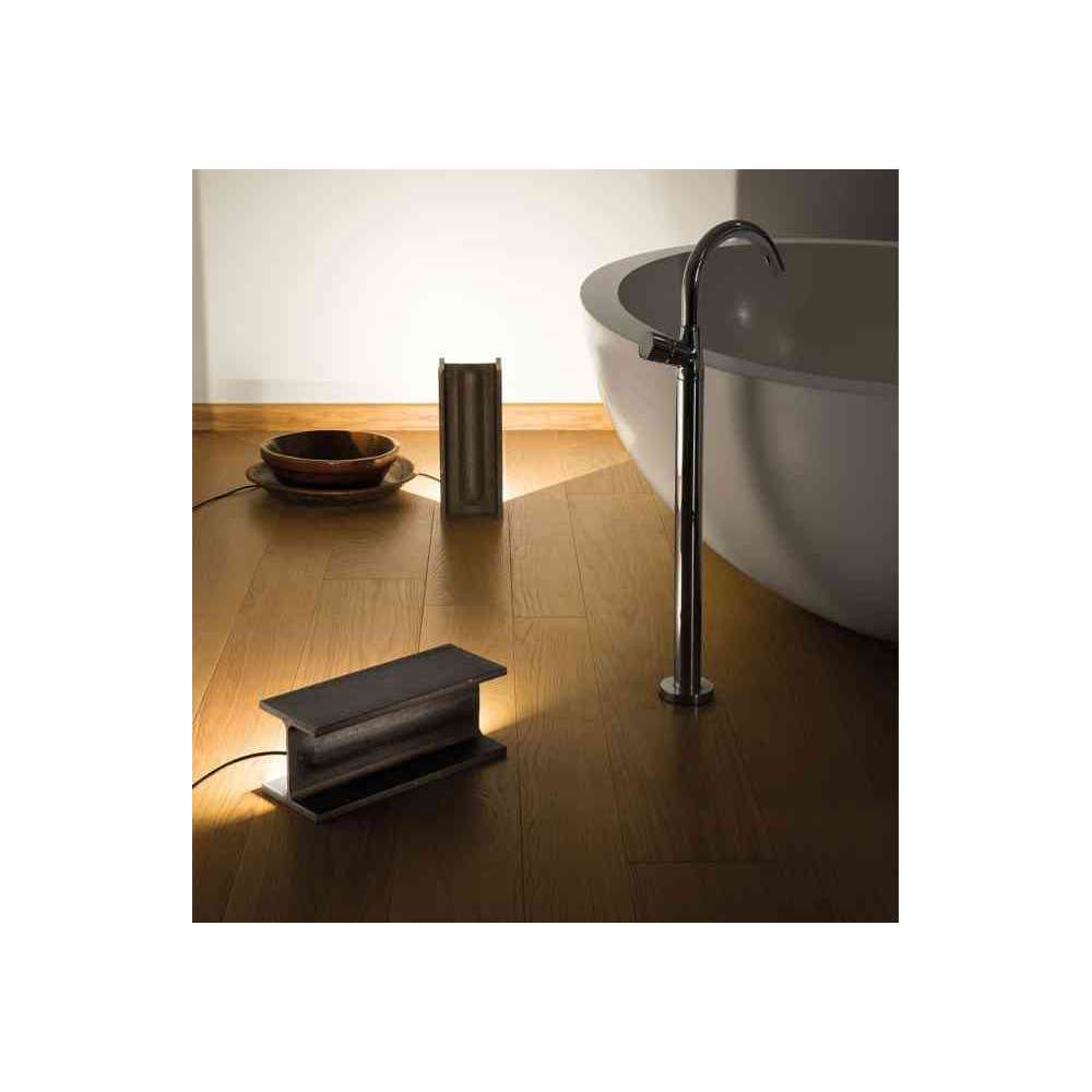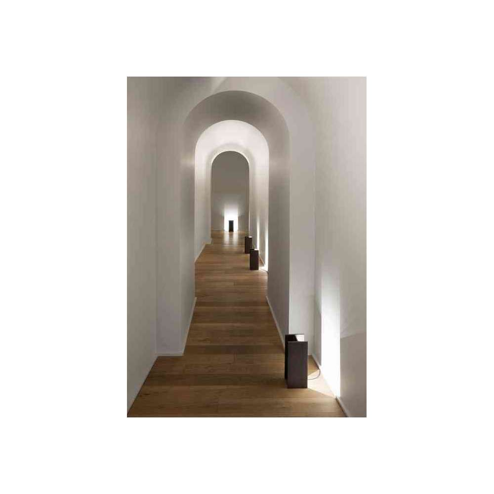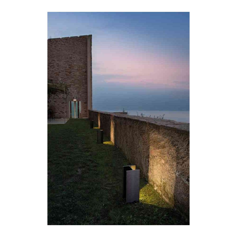 Lampa podłogowa do wnętrz i na zewnątrz, surowa, pokryta ochronną farbą zewnętrzną, zapewniająca ciepłe i szerokie oświetlenie. Każda lampa jest produktem wykonanym ręcznie: niewielkie różnice estetyczne i wykończeniowe między jedną lampą a drugą czynią je wyjątkowymi.