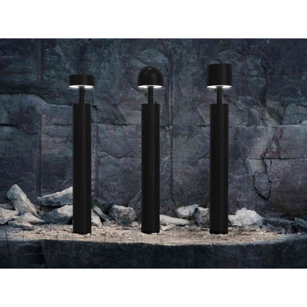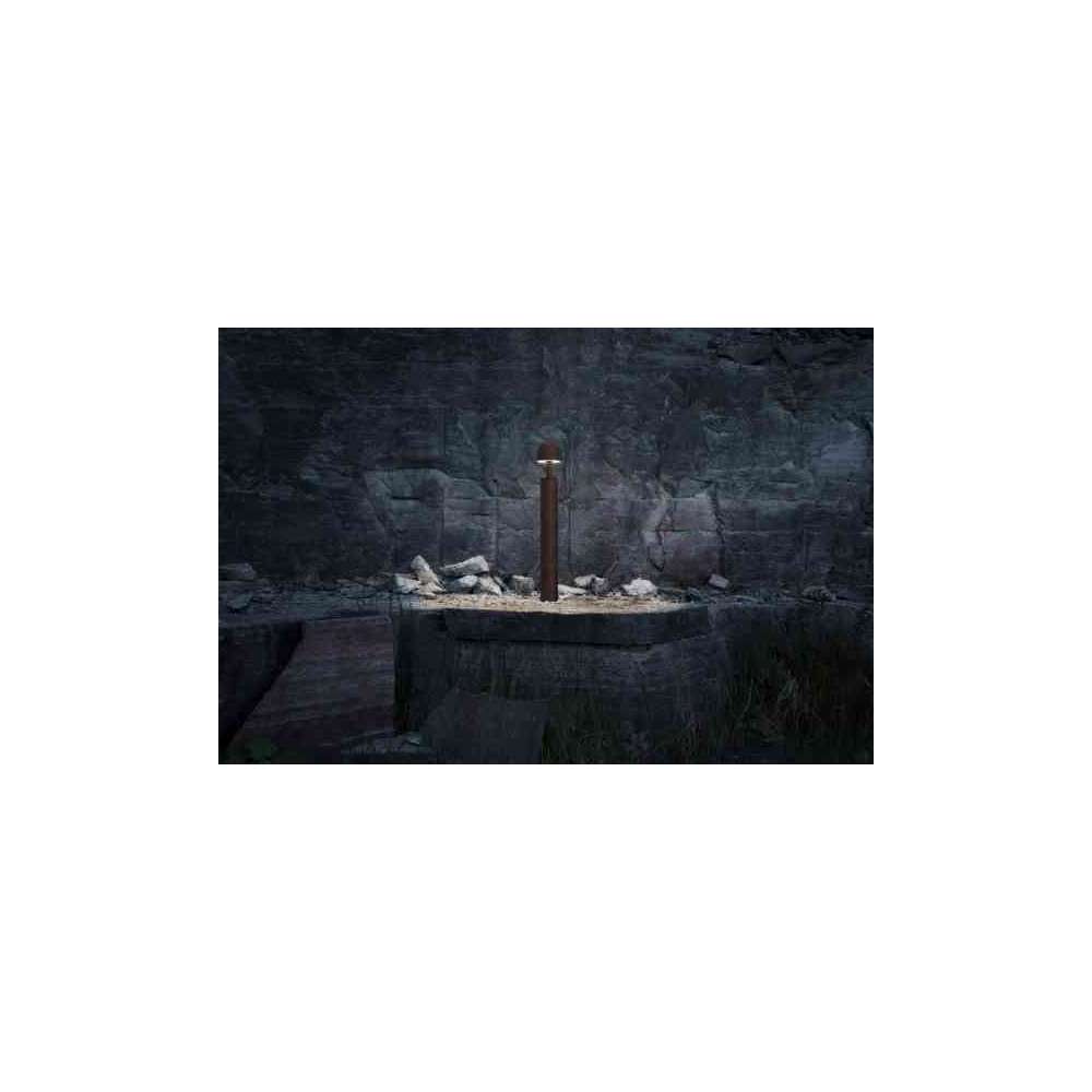 - Słupek z kloszem z aluminium i rurą ze stali nierdzewnej. Malowane na czarno RAL 9005 lub wykończenie corten. Inne kolory na zamówienie.