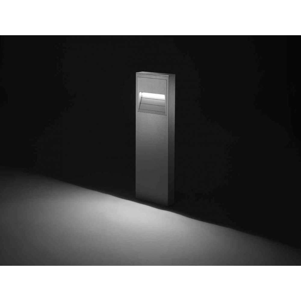 Słupek o wysokości 700 mm, przekrój prostokątny, do montażu na zewnątrz, spryskiwacz podłogowy rozsył światła 180°, fosfo- chromowany i powlekany proszkowo poliestrowy korpus z ekstrudowanego aluminium bez miedzi, dyfuzor z matowego szkła, formowana uszczelka silikonowa i śruby ze stali nierdzewnej. Wbudowany sterownik LED 220-240V 50-60Hz, z 6 diodami CREE XH-G średniej mocy. Stopień ochrony IP65.