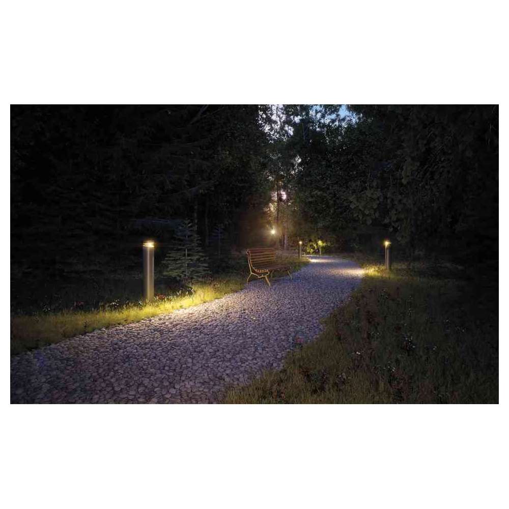 słupek o wysokości 600mm, okrągły kształt, do montażu na zewnątrz, emisja światła 360°, fosfo-chromowany i powlekany proszkowo poliestrem korpus z odlewu aluminiowego bez miedzi, klosz z poliwęglanu, formowana uszczelka silikonowa i śruby ze stali nierdzewnej. W zestawie śruby kotwiące - Wbudowany sterownik LED 220-240V 50-60Hz, z 12 diodami LED wysokiej mocy CREE XP-G2. Klasa szczelności IP65.