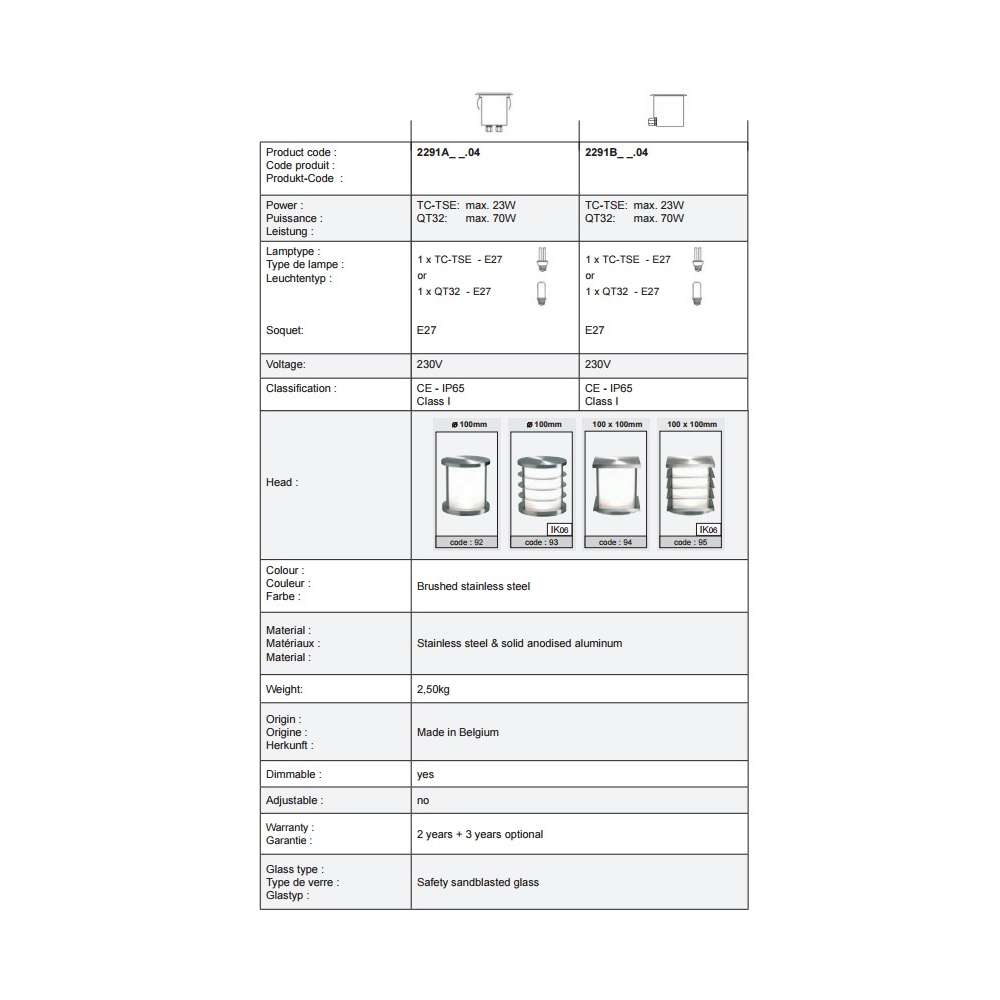 WYSTRÓJ ZAXOR | Wodoodporny IP65 do gruntu symetryczny słupek dyfuzyjny ze stali nierdzewnej Częściowo zagłębiony słupek ogrodowy Symetryczny słupek dyfuzyjny, ten nowoczesny i wytrzymały słupek wykonany jest ze stali nierdzewnej. Do ustawienia na ziemi może używać żarówki LED, halogenowej lub ekonomicznej świetlówki. Ten wysokiej jakości słupek wytwarzany jest w procesie obróbki mechanicznej, jego kształt nadaje tej oprawie współczesną estetykę. Ten słupek jest szczególnie przystosowany do orientacji i znakowania. Jest to atrakcyjne rozwiązanie do wielu zastosowań zewnętrznych. Dostępne w różnych wariantach, do montażu na ścianie lub na słupkach. OPIS: Korpus z litego anodowanego aluminium Główka ze stali nierdzewnej Śruby i sprężyna ze stali nierdzewnej Część wpuszczana - Stopień ochrony IP67 Główka - Stopień ochrony IP65 - IK07 Bezpieczna pleksi piaskowana Klasa energetyczna EC: A++/A AKCESORIA: Puszka do wbudowania - Pop 5 Pudełko do wbudowania - Puszka Zaxor Żarówka Led E27 GŁOWICA: 92 Okrągła główka Strida R (d.100mm) 93 Okrągła główka Spirit R (d.100mm) 94 Kwadratowa główka Strida K (100x100mm) 95 Kwadratowa główka Spirit K (100x100mm) KOLOR: 04 Stal nierdzewna szczotkowanaOdbiorca: :