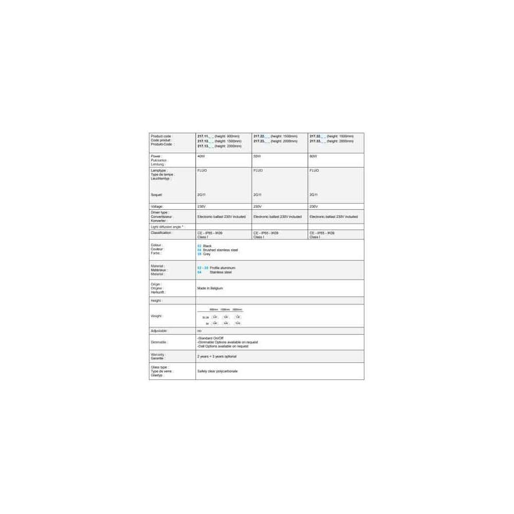Elyo FL | Wysoki słupek ogrodowy Ø100 Okrągły Wodoodporny IP65 ze stali nierdzewnej/aluminium z symetrycznym rozpraszaniem bez odblasków Wysoki słupek z symetrycznym rozpraszaniem, ten solidny uchwyt jest produkowany ze stali nierdzewnej lub aluminium i dostępny w różnych rozmiarach. Ten wysokiej jakości słupek jest wytwarzany w procesie obróbki mechanicznej, połączenie aluminium/stali nierdzewnej i poliwęglanu zapewnia temu osprzętowi dobre właściwości mechaniczne. Jest to atrakcyjne rozwiązanie dla wielu zastosowań oświetlenia zewnętrznego. OPIS: Korpus wykonany z aluminium lub stali nierdzewnej Śruby ze stali nierdzewnej Stopień ochrony IP65 - IK09 Bezpieczny, przezroczysty poliwęglan (2G11) Statecznik elektroniczny 230V w zestawie Zasilacz (LED) 230V i dioda LED Reflektor wykonany z aluminium (2G11) Bez żarówki Klasa energetyczna EC: A+ (LED) lub A (2G11 ) AKCESORIA: Kolec do mocowania do podłoża - Pic 1 (nie dla 2000mm) Płyta podstawy d.200mm - Stic ŻARÓWKA / LED: 1 FLUO 2G11 - 40W 2 FLUO 2G11 - 55W 3 FLUO 2G11 - 80W W31 LED 13W - 3000K W32 LED 20W - 3000K KOLOR: 02 Czarny 04 Stal nierdzewna szczotkowana 24 corten 39 SzaryOdbiorca: :