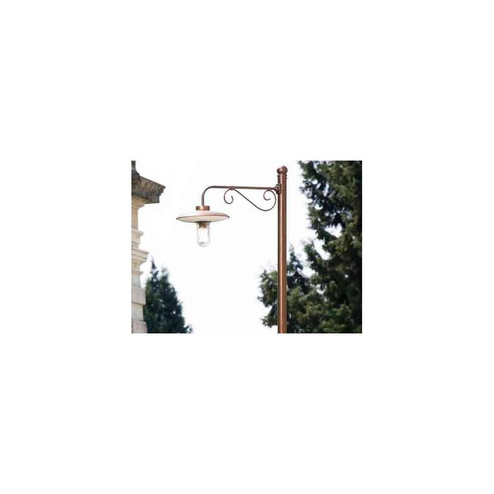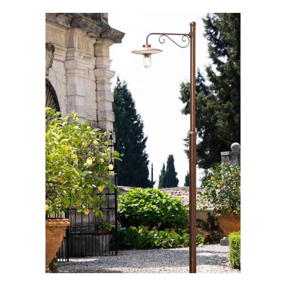 Seria kinkietów i lamp ulicznych na słup zewnętrzny z kloszem z postarzanej miedzi, odbłyśnikiem aluminiowym emaliowanym na biało, hartowane przezroczyste szkło i postarzane mosiężne ramię. Lampa ścienna dostępna jest w wersji ze szkłem ochronnym lub bez. Lampa uliczna powinna być zintegrowana ze słupami i/lub piwnicami, które należy zamawiać osobno. To zestaw o znakomitym efekcie, który staje się wyrazistym wyposażeniem ogrodów, alejek, remontów.Odbiorca: :