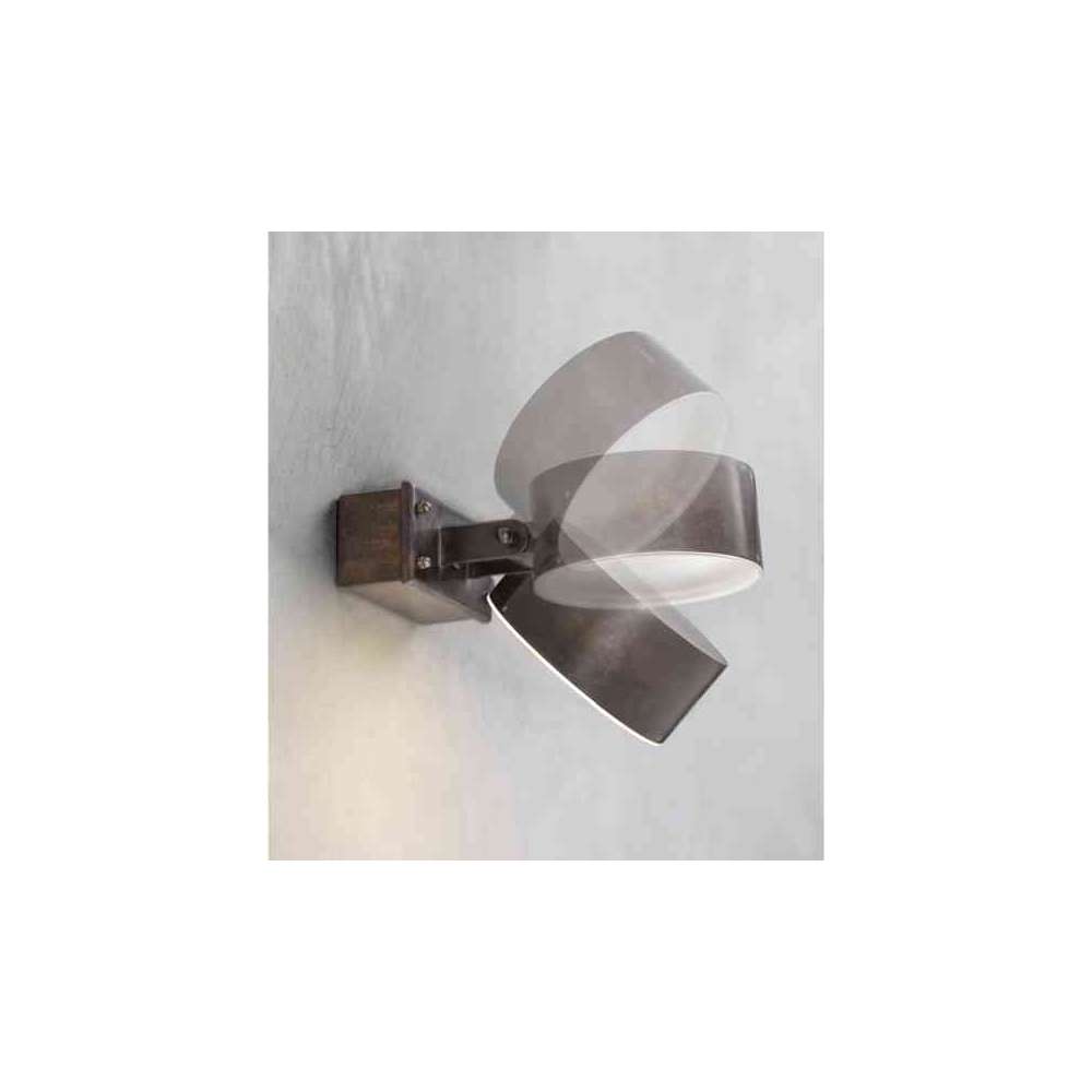 Kinkiet zewnętrzny odpowiedni do oświetlania przestrzeni publicznych takich jak portyki, loggie, tarasy. Wykonany z postarzanego mosiądzu, można go regulować o 180 stopni w jednym kierunku (pionowym lub poziomym). Można go umieścić na ścianie, ale także na suficie. ACELUM w połączeniu z niektórymi akcesoriami naszej produkcji przekształca się w ciekawy „widoczny system” na zewnątrz.