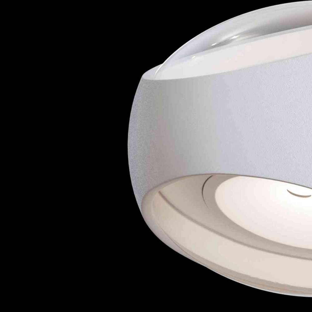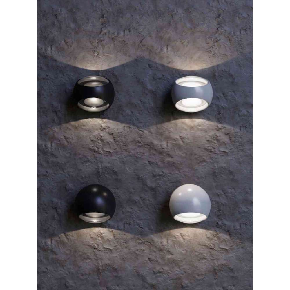 Kinkiet Stream. Seria do architektonicznego oświetlenia artystycznego. Rama kulowa wykonana z aluminium. Kolor biało-czarny. Modele z dwustronnym i jednostronnym kierunkiem strumienia światła.