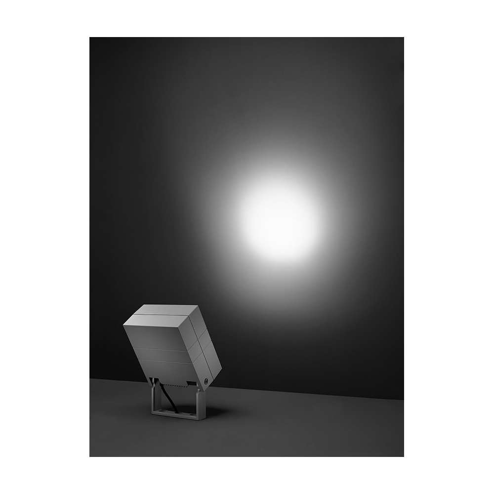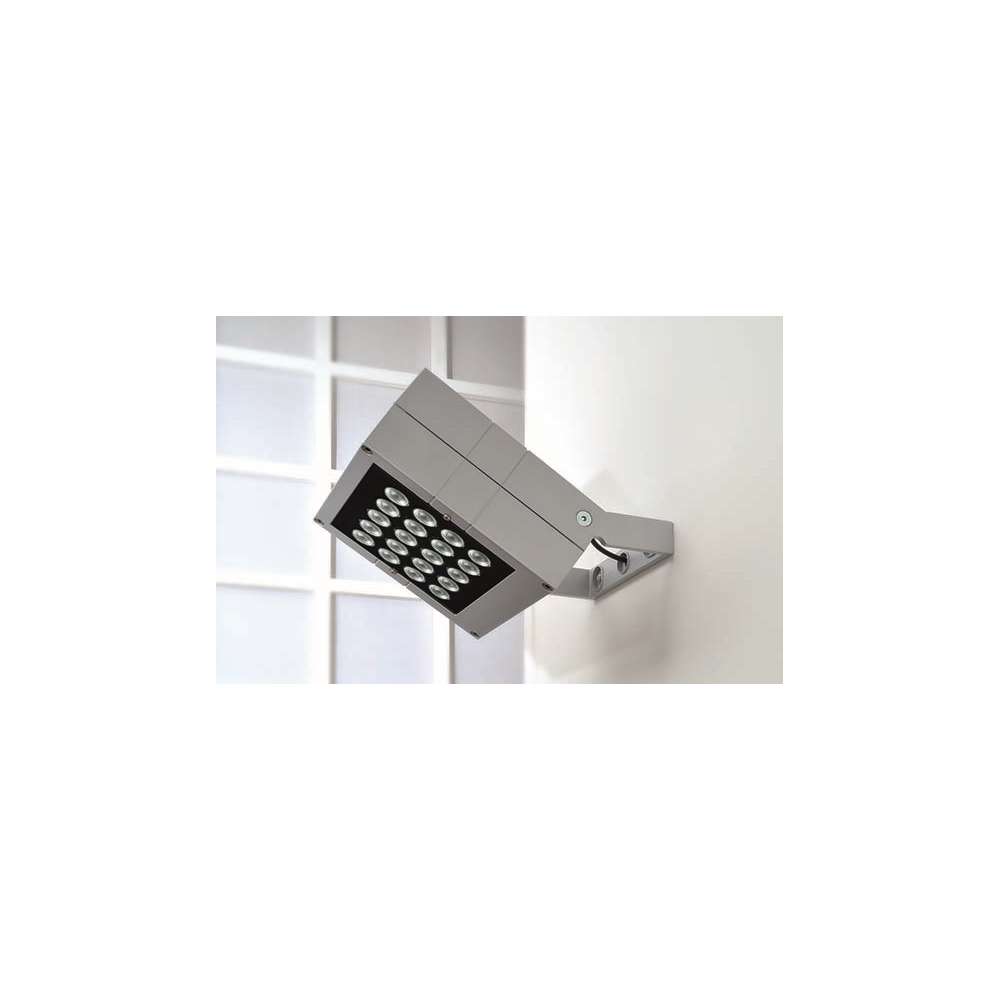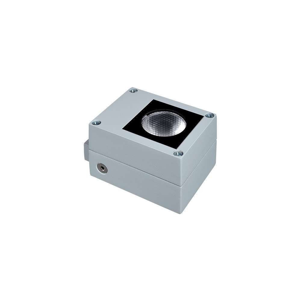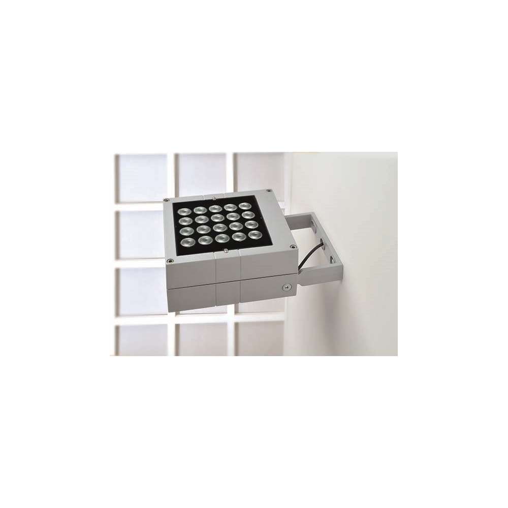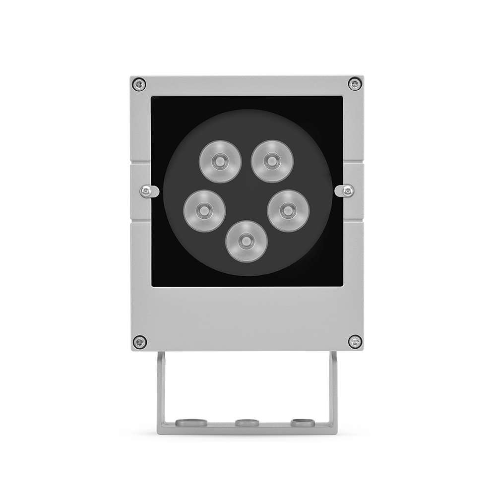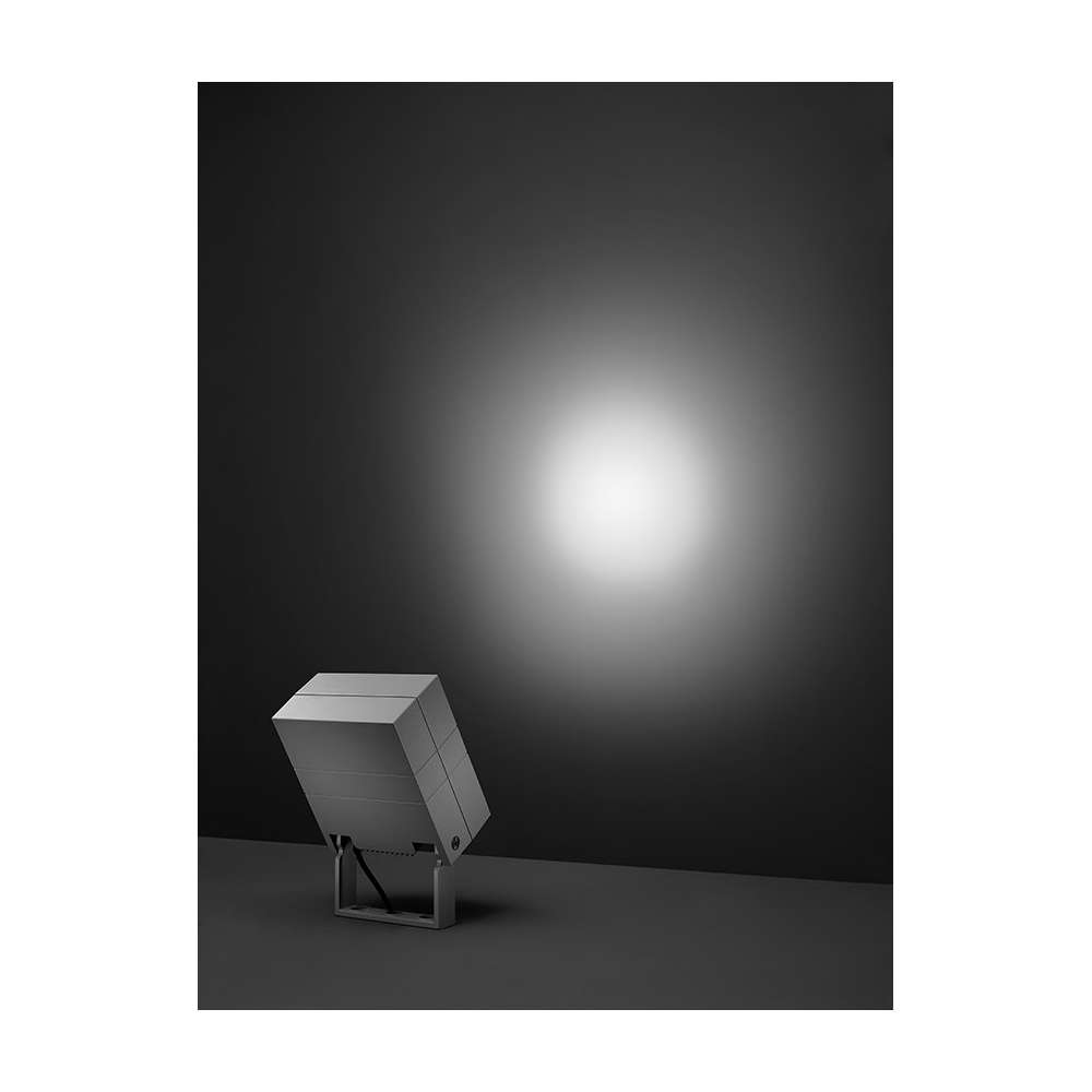 Naświetlacz kwadratowy do montażu na zewnątrz na elewacji/ścianie. Korpus z odlewanego ciśnieniowo aluminiowego odlewu fosforanowanego i malowanego proszkowo na bazie poliestru, hartowane szkło bezpieczne, uszczelka formowana z silikonu i śruby ze stali nierdzewnej.
