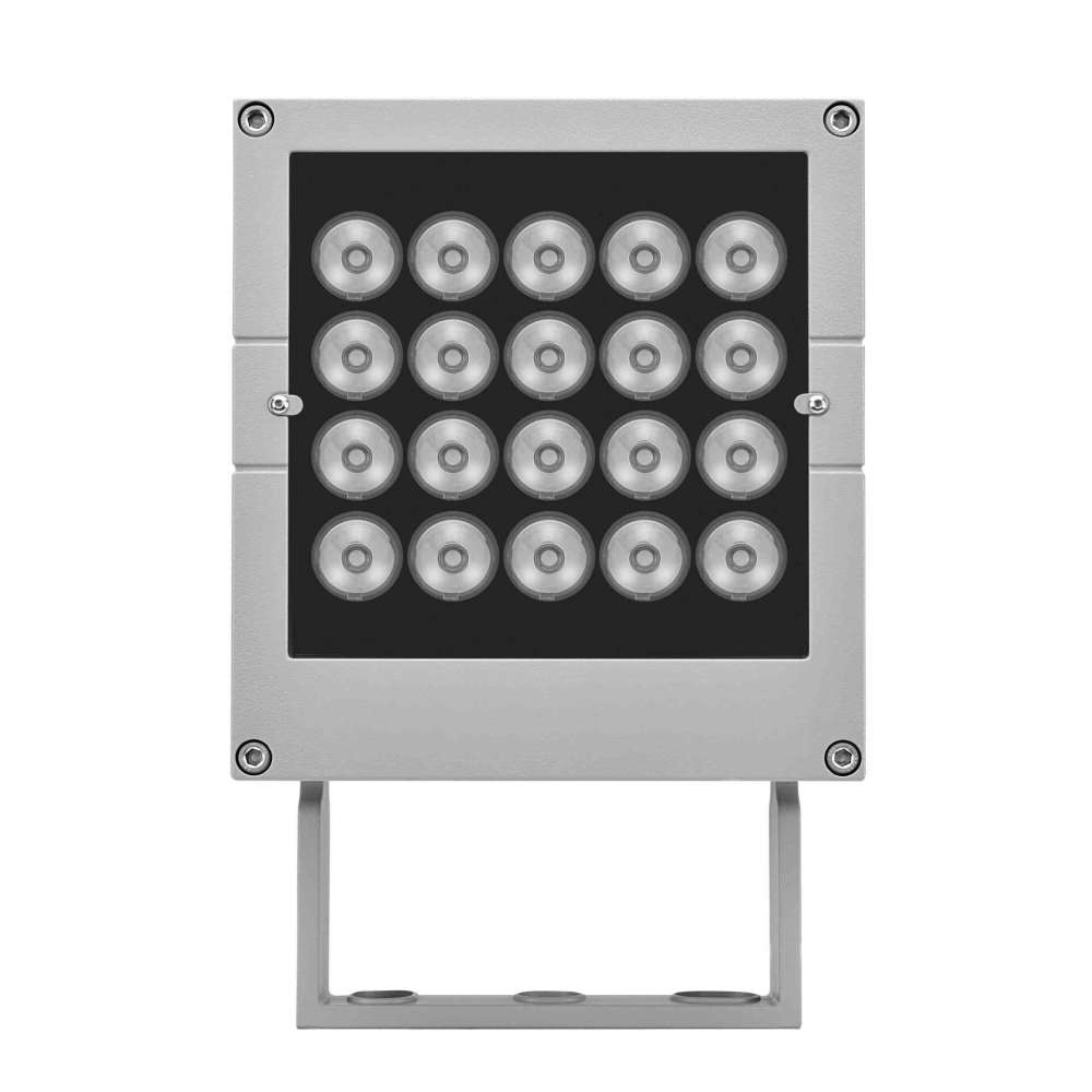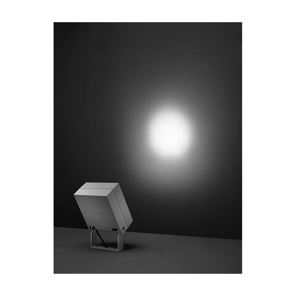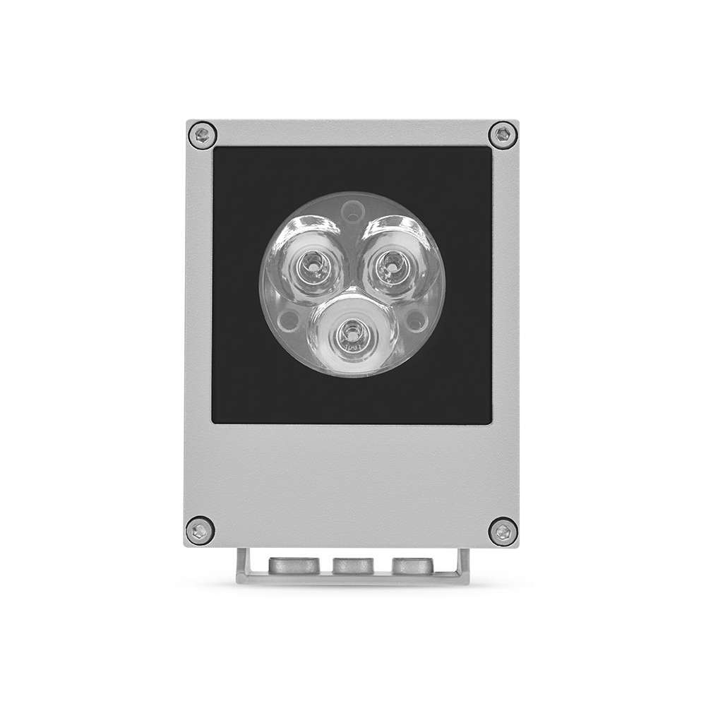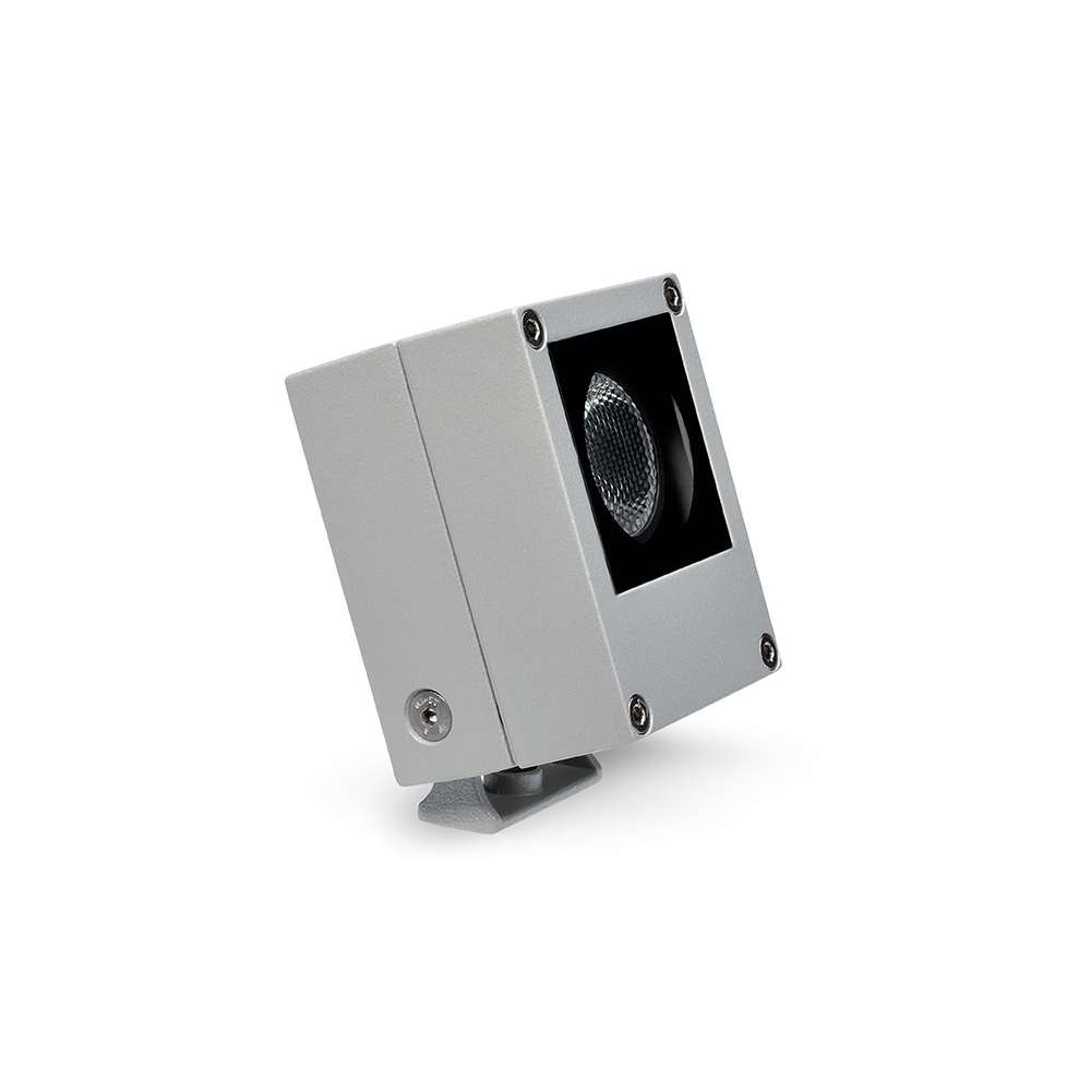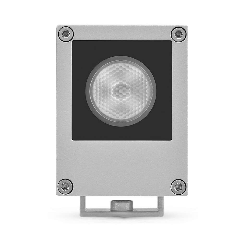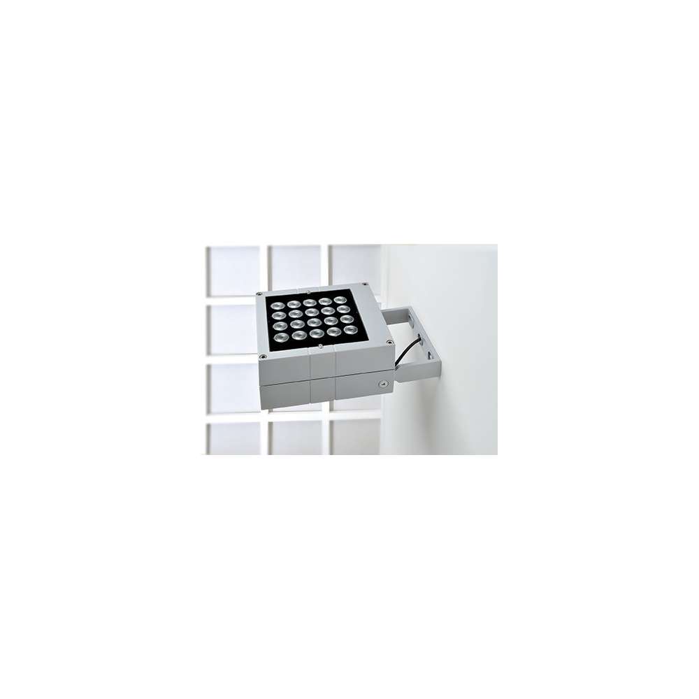 Naświetlacz kwadratowy do montażu na zewnątrz na elewacji/ścianie. Korpus z odlewanego ciśnieniowo aluminiowego odlewu fosforanowanego i malowanego proszkowo na bazie poliestru, hartowane szkło bezpieczne, uszczelka formowana z silikonu i śruby ze stali nierdzewnej.