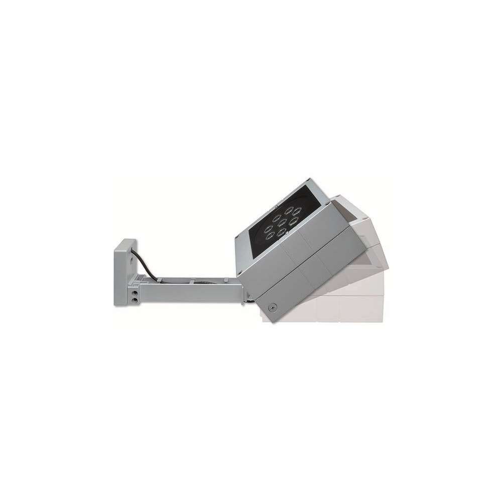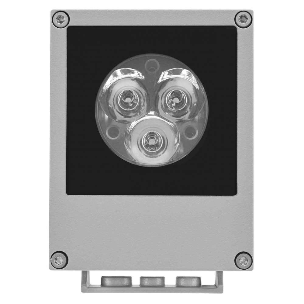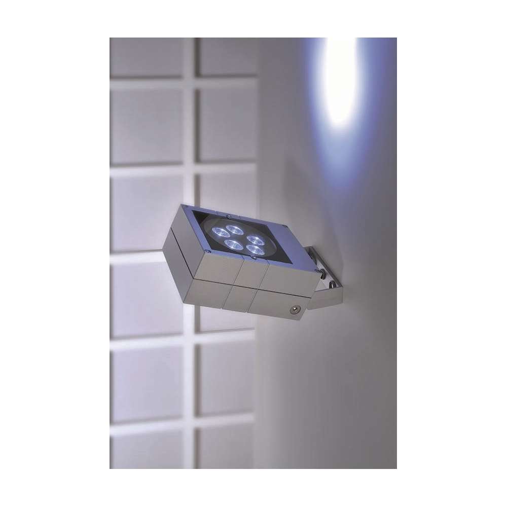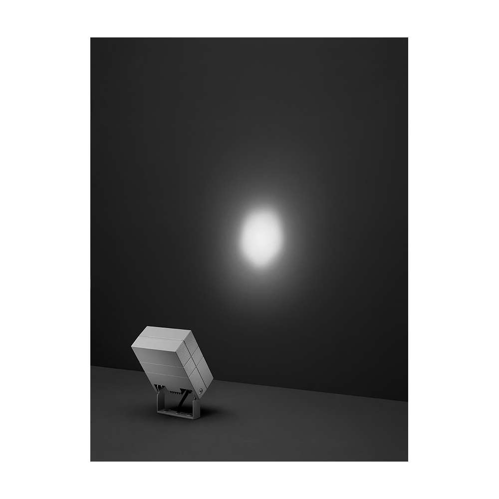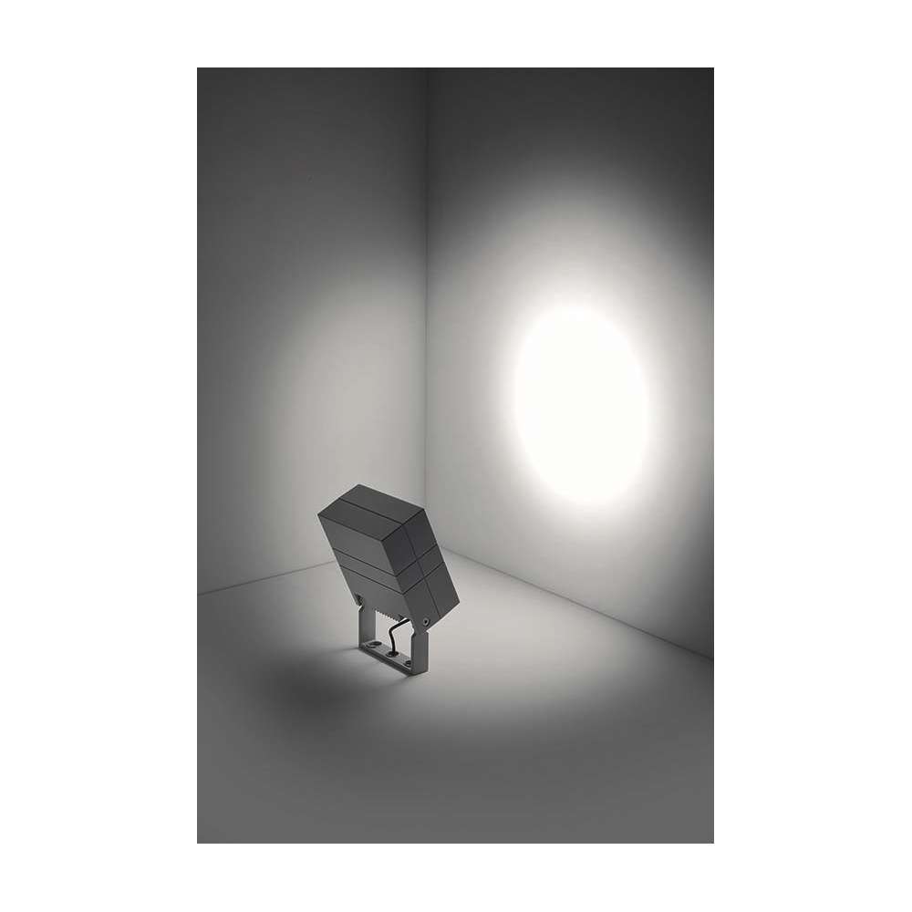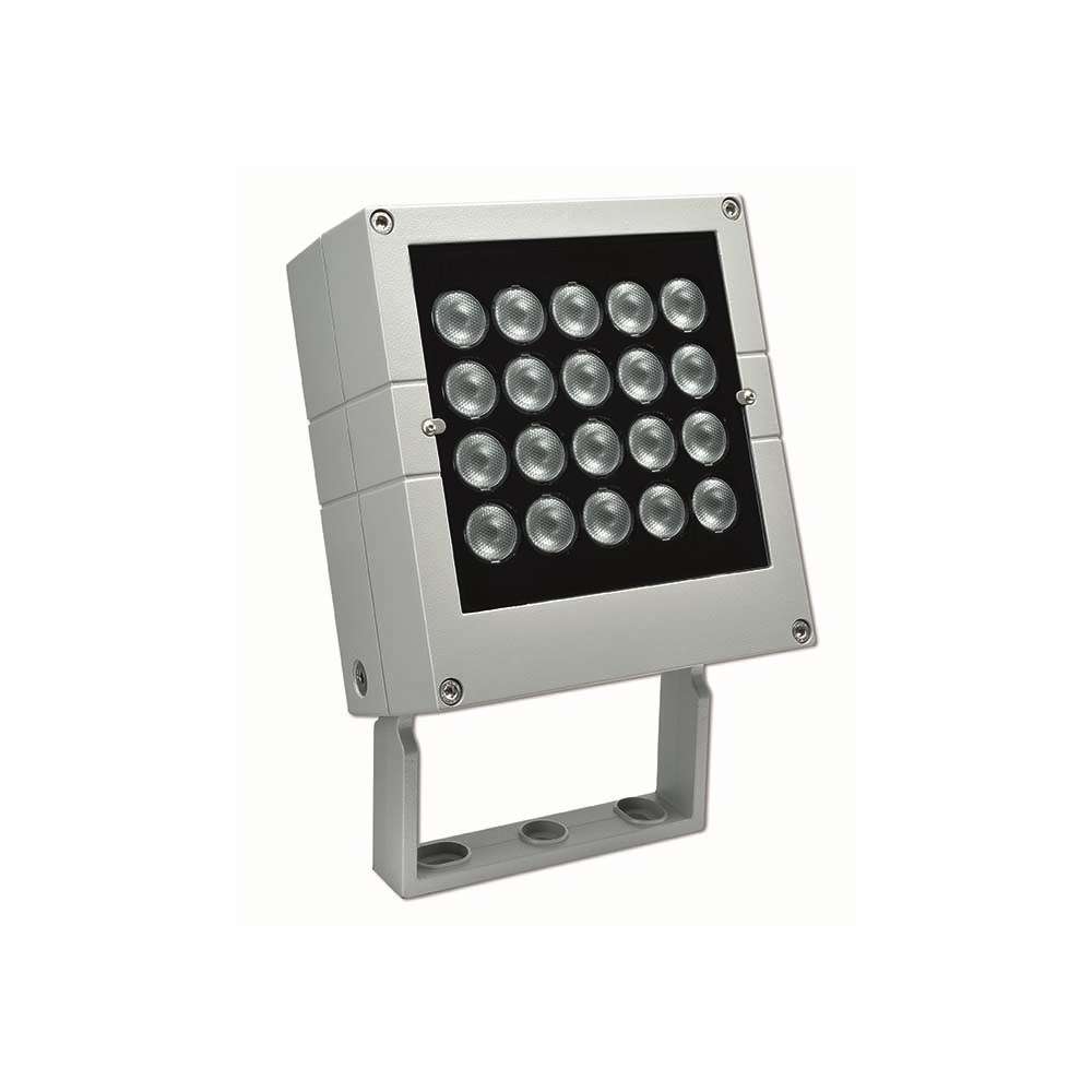 Naświetlacz kwadratowy do montażu na zewnątrz na elewacji/ścianie. Korpus z odlewanego ciśnieniowo aluminiowego odlewu fosforanowanego i malowanego proszkowo na bazie poliestru, hartowane szkło bezpieczne, uszczelka formowana z silikonu i śruby ze stali nierdzewnej.