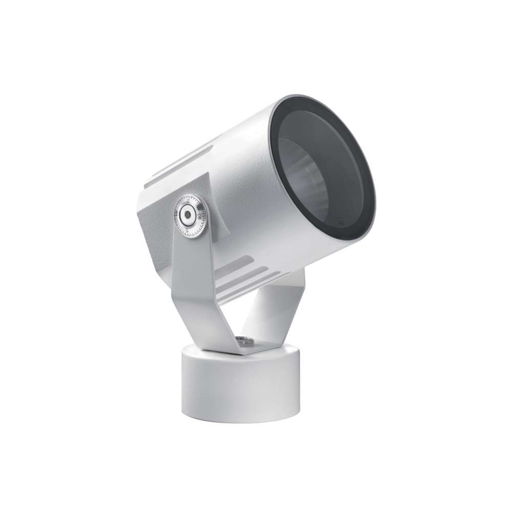 Projektor do zastosowań zewnętrznych; montowane na powierzchni (sufit, ściana, ziemia); korpus z aluminium, ekran z hartowanego, serigrafowanego szkła; wykończenia: antracyt, biały, cor-ten, szary; 1 dioda COB; 10W - 230Vac; wbudowany zasilacz; zawiera przewód neoprenowy 1,5 m, H05RN-F 3x1,0 Ø7 mm; łączna liczba lumenów: 640 lm (3000K, CRI 80), 340 lm (3000K, ostry 16°, CRI 80), 544 lm (3000K, CRI 90), 289 lm (3000K, ostry 16°, CRI 90); optyka: ostra 16°, 16°, 30°, 63°; kolor LED: biały - 2700K, 3000K, 4000K; wersje CRI 80 i CRI 90; stopień ochrony: IP66; odporność na uderzenia: IK07; wyposażony w IPS i SPD; temperatura pracy: -20°C+45°C; temperatura ekranu: max 40°C (Ta 25°C); bezpieczeństwo fotobiologiczne: grupa ryzyka 1 zgodnie z EN62471:2006; klasa urządzenia: I; waga 2,60 kg; wymiary Ø109x130x200 mm; akcesoria: raster o strukturze plastra miodu, dysza standardowa, dysza asymetryczna, wrota do stodoły malowane na kolor czarny, kołek do montażu w ziemi
