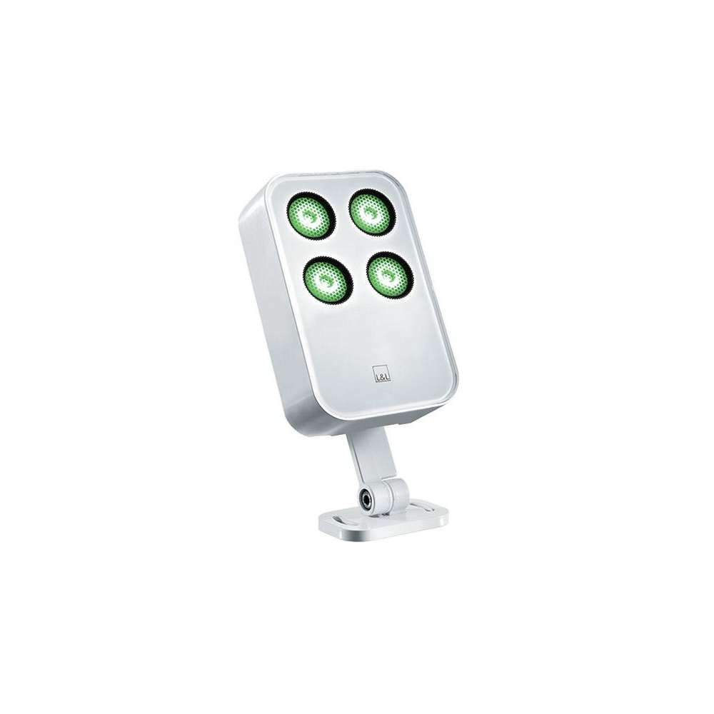 Projektor do zastosowań zewnętrznych; montowane na powierzchni (sufit, ściana, ziemia, słupek); korpus z odlewanego ciśnieniowo stopu aluminium EN AB 47100, ekran z serigrafowanego szkła hartowanego; wykończenia: antracyt, biały, cor-ten, szary; 4 grupy LED RGBW; 20W - 24Vdc; zawiera 1,5 m kabel FEP+PCP (odpowiednik kabla H05RN-F), 4x0,50/0,50 Ø6,3 mm; dostarczony strumień świetlny: 756 lm (4000K) (R: 118 m, G: 209 lm, B: 84 lm, W: 345 lm); optyka: 21°, 32°, 58°, 30°x60°, 60°x30°; kolor diody: RGBW; stopień ochrony: IP66; odporność na uderzenia: IK06; IPS wbudowany w dławik kablowy; temperatura pracy: -20°C+45°C; temperatura ekranu: max 40°C (Ta 25°C); Test rozżarzonego drutu: 960°; bezpieczeństwo fotobiologiczne: grupa ryzyka 1 zgodnie z EN62471:2006; klasa urządzeń: III; waga 1,57 kg; wymiary 254x123x58 mm; 4-kanałowy kontroler stałego napięcia PWM (wymagany); akcesoria: słupek WP0300, okap antracytowy WB5020H