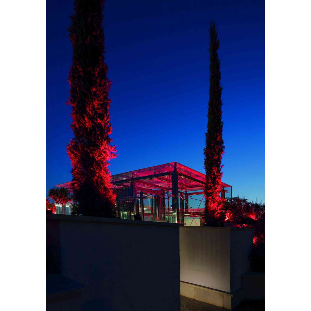 Projektor do zastosowań zewnętrznych; montowane na powierzchni (sufit, ściana, ziemia, szpic); Moc: 13W; Zasilanie: 24Vdc; Strumień świetlny u źródła: 512 lm, R: 88 lm G: 160 lm B: 52 lm W: 212 lm (4000 K); Dostarczony strumień świetlny: 304 lm, R: 52 lm G: 95 lm B: 31 lm W: 126 lm (4000 K, 33°); 1 grupa LED RGBW, 50000h L85 B10 (Ta 25°C); kolor diody: RGBW; Optyka: 24°, 33°, 60°, 32°x61°, 61°x32°; Materiał: korpus z aluminium, ekran z serigrafowanego, przezroczystego, hartowanego, bardzo przezroczystego szkła; Wykończenia: cor-ten, biały, szary, antracyt; zasilacz nie wchodzi w skład zestawu; zawiera kabel 1,5 m FEP+RUB (odpowiednik kabla H05RN-F) 6x0,50/0,50 Ø6,3 mm; Stopień ochrony: IP66; Odporność na uderzenia: IK07; Systemy zabezpieczeń: IPS, PID; Temperatura pracy: -20°C — +45°C; Maksymalna temperatura urządzenia: 50°C (Ta 25°C); Test rozżarzonego drutu: 960°; Bezpieczeństwo fotobiologiczne: grupa ryzyka 1 zgodnie z EN6 2471:2006; Klasa urządzenia: III; Waga: 800g; Wymiary: Ø60x154x147 mm.