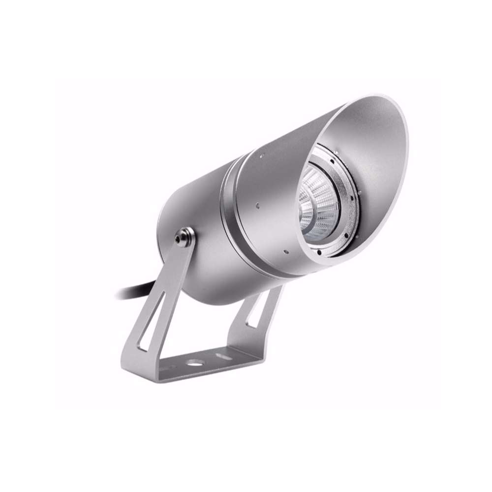Projektor LED ze wspornikiem i szpikulcem do uziemienia. Dioda CREE. Żywotność 50.000h (utrzymanie 70% strumienia świetlnego). Korpus z anodowanego aluminium. Neoprenowy przewód H05RN-F 3x1mm2 o długości 1,5m. W zestawie zasilacz 220-240V 50/60Hz.Odbiorca: :