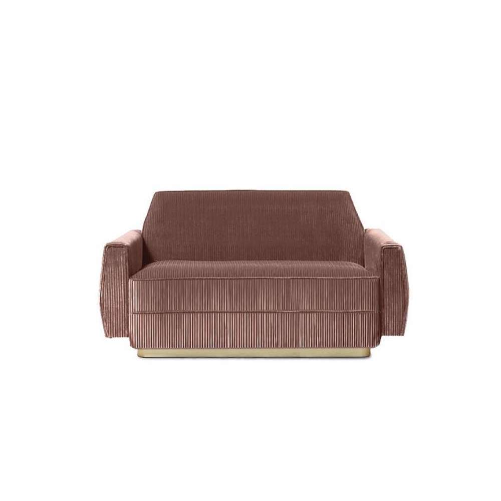 Doris wygląda jak sofa z wanną, ponieważ ma bardzo geometryczny kształt. Jego prostokątna podstawa wykonana jest w całości z polerowanego mosiądzu i ma kształt ramienia klina, obita drapowanym aksamitem wzdłuż ciała. Poduszka jest gładka, przeszyta cienką liną dla zaakcentowania jej form. Doris to zdecydowanie dekoracyjny element Twojego salonu.