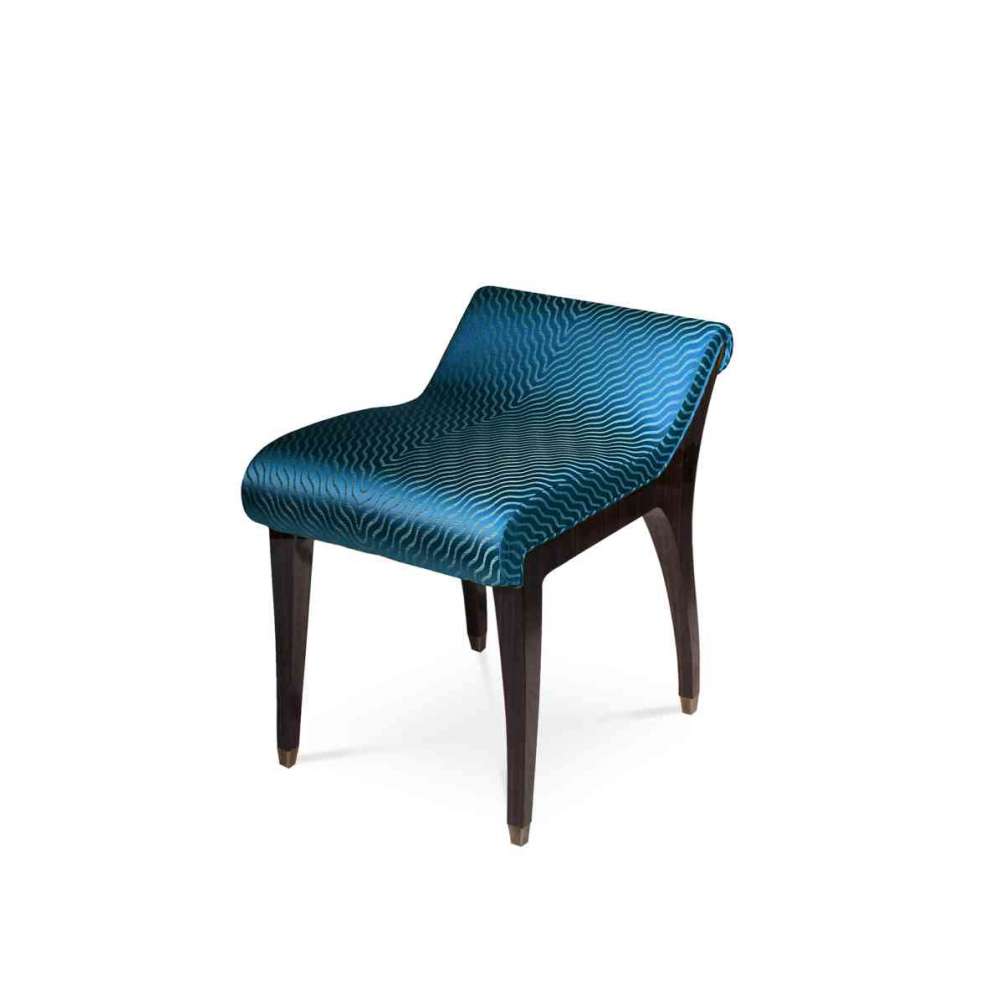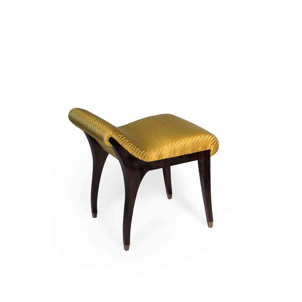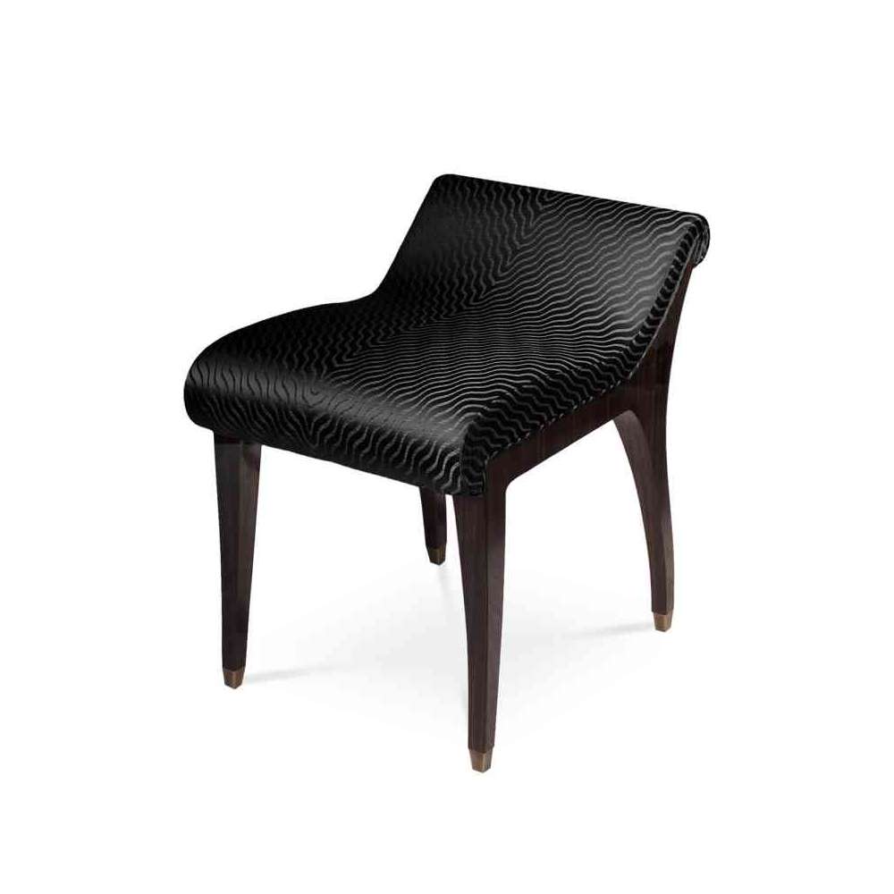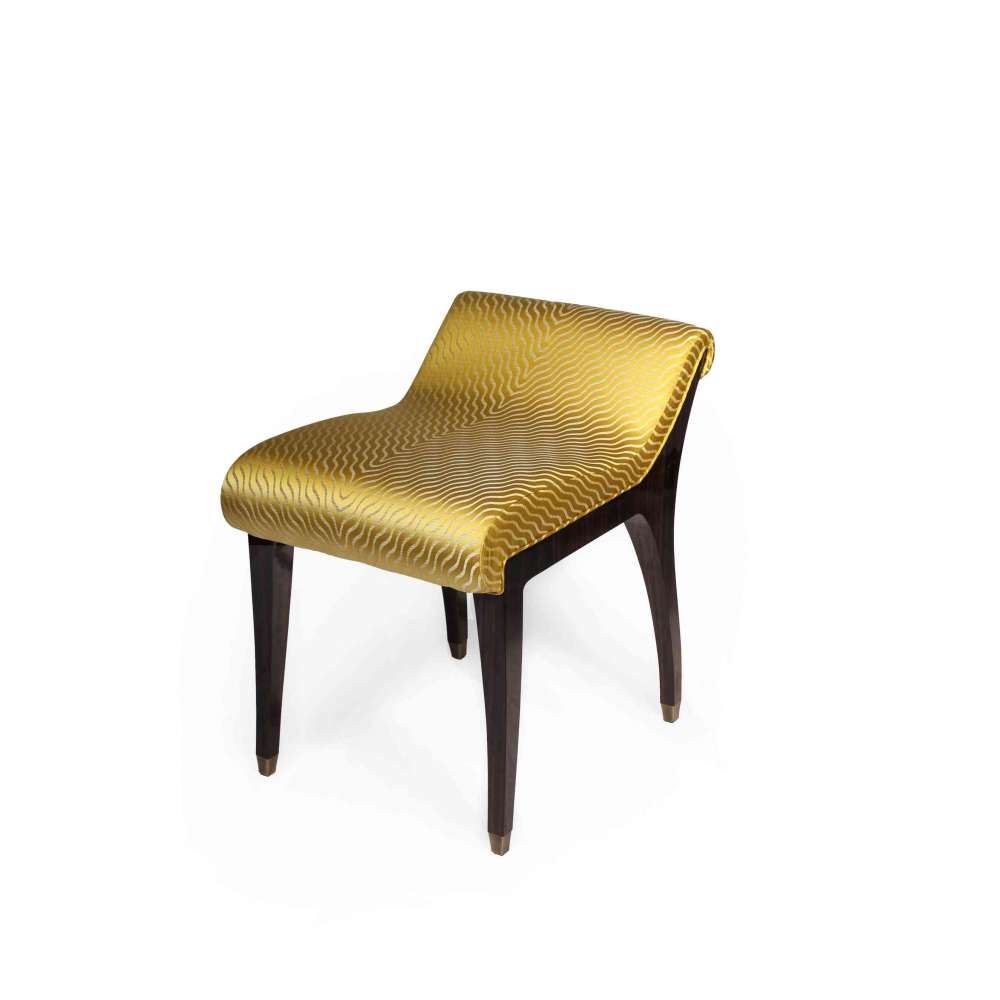 Kusząca prostota jest przykładem tego płynnego i wdzięcznego stołka. Marszczona tkanina Chartreuse w połączeniu z bogatym hebanowym fornirem dopełnia oszałamiające arcydzieło.