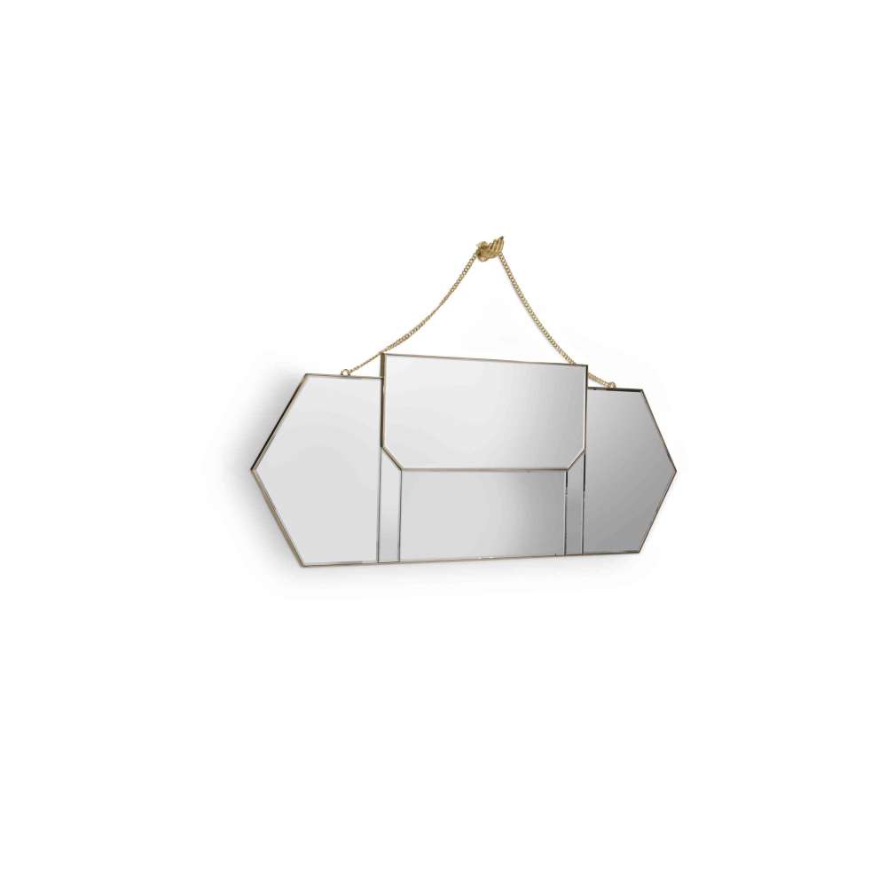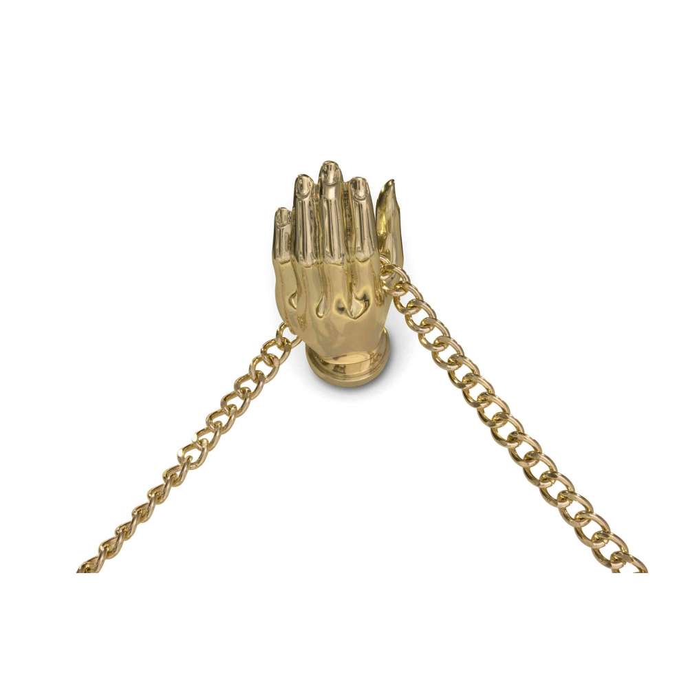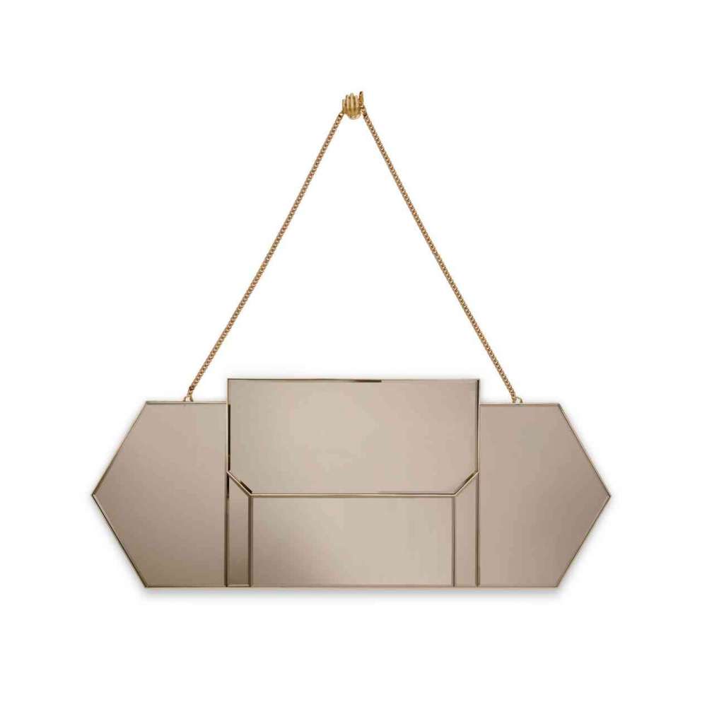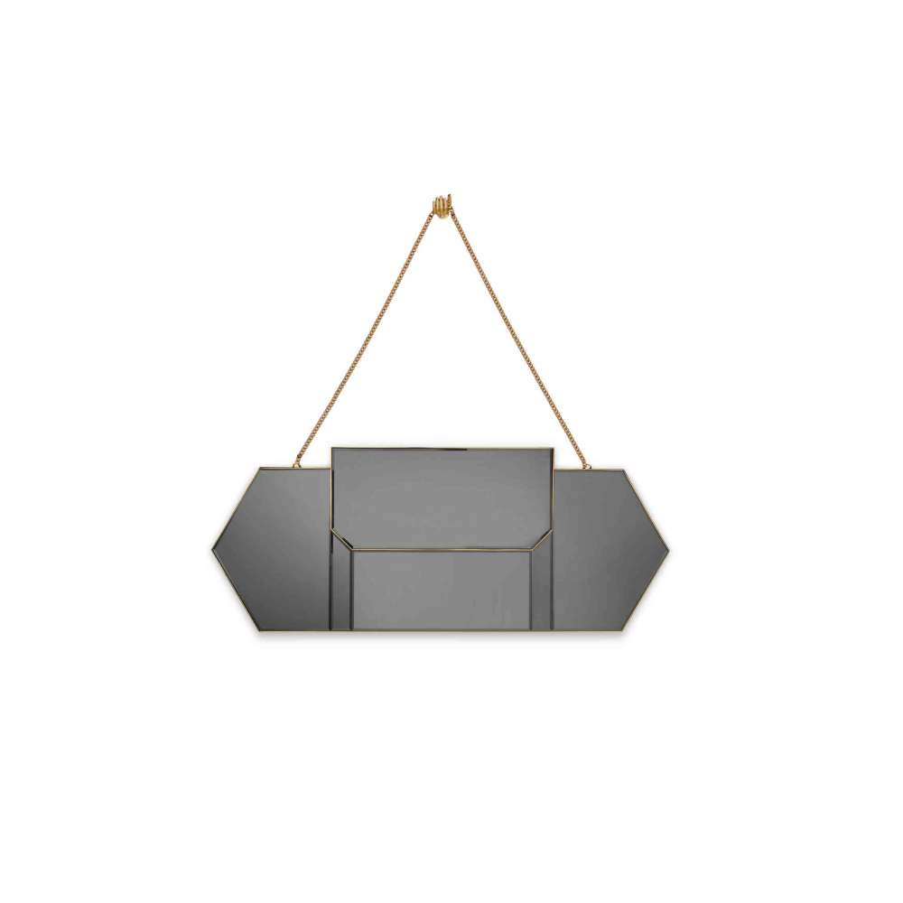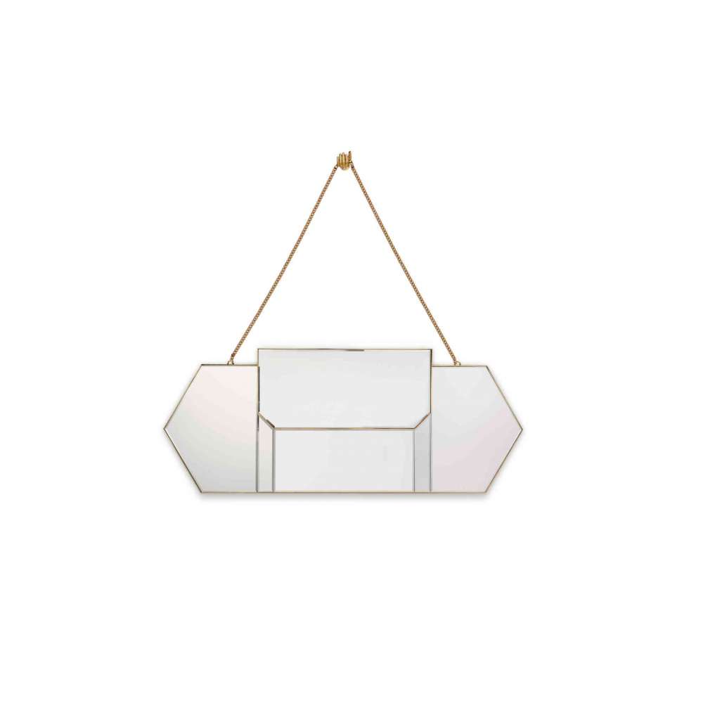 Prosty styl tego lustra łączy w sobie symetrię Art Deco z dotykiem delikatnej, odlewanej mosiężnej dłoni trzymającej w dłoni łańcuszek.