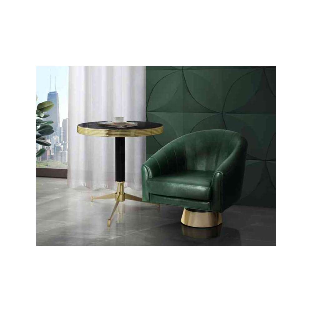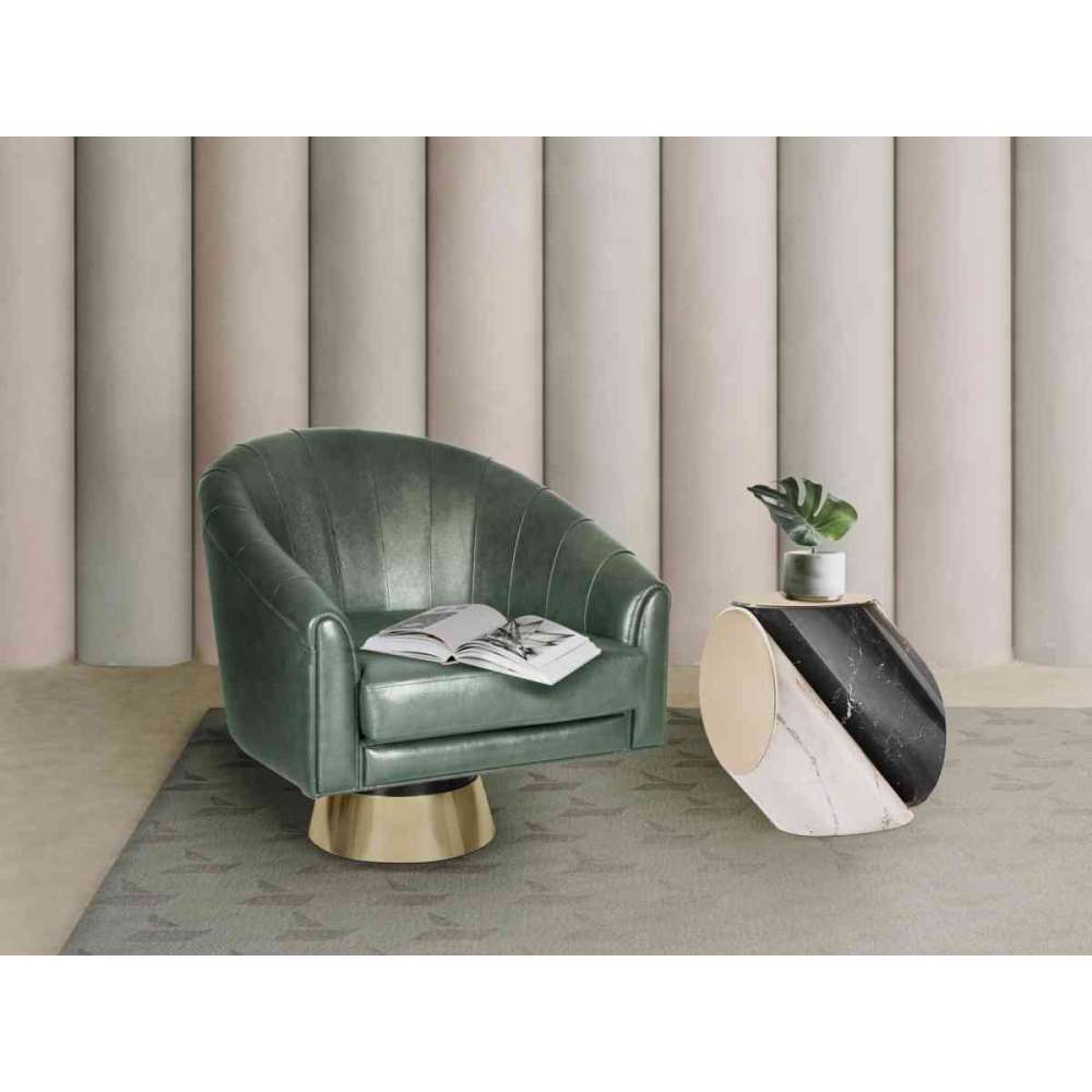 Będąc idolem na poranek, Bogarde wkrótce stał się gigantem intelektualnego kina wysokiej rangi. Dlatego powstał ten inspirujący fotel akcentujący. Jest wykończony skórą, bardzo popularną tkaniną w latach 60., a obrotowa, polerowana mosiężna podstawa przekazuje ideę stylu i zabawy. Świetnie sprawdzi się jako krzesło okazjonalne do domu lub biura.
