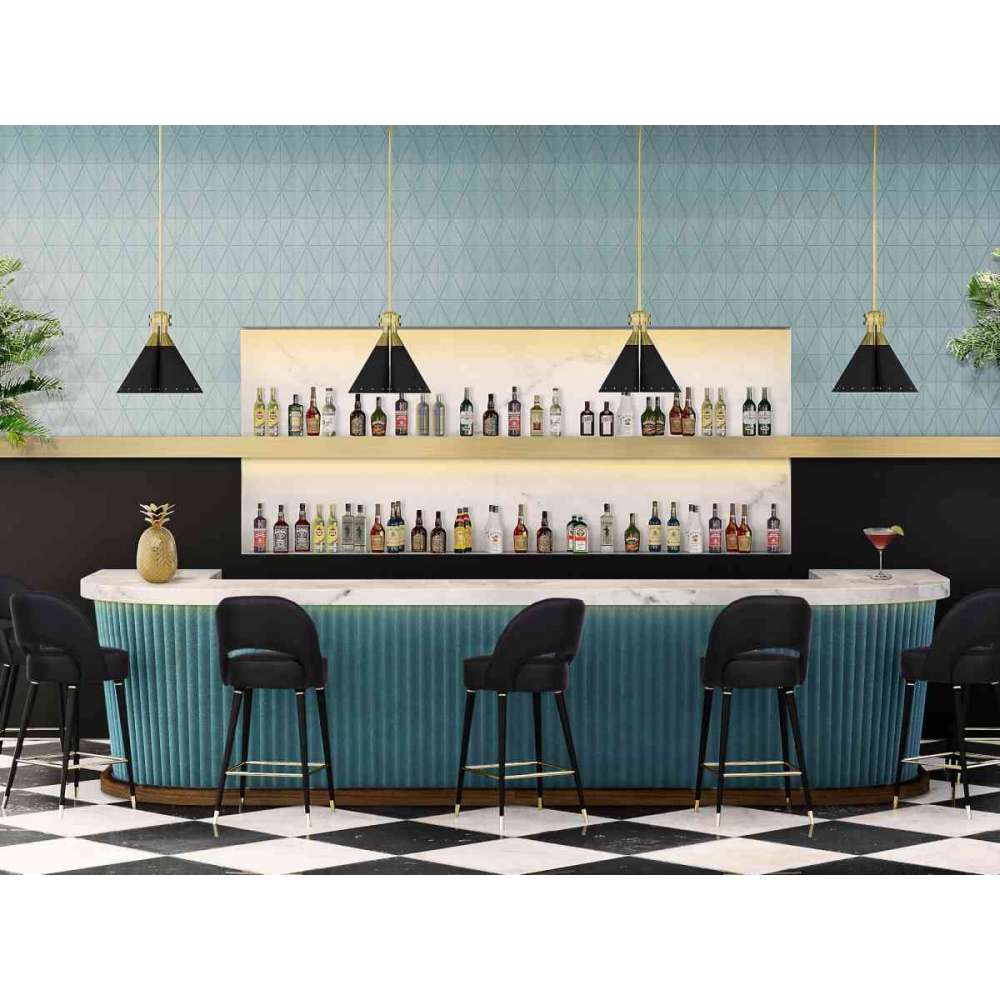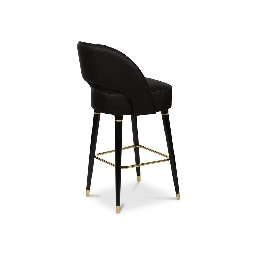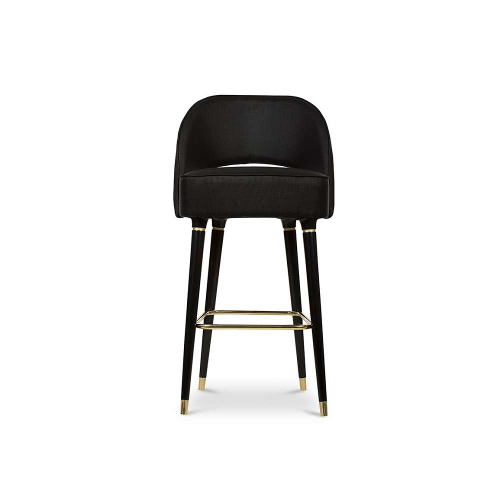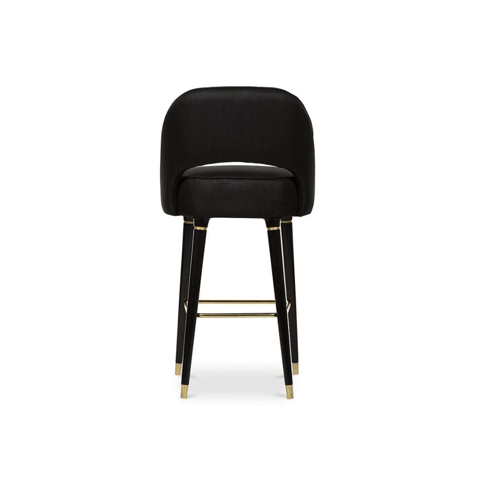 Collins to półksiężycowe krzesło barowe z otwartym oparciem, zaprojektowane z wykorzystaniem eleganckich, nowoczesnych linii z połowy wieku. Ma efektowne, błyszczące, czarne nogi, zaakcentowane detalami z polerowanego mosiądzu, szczególnie w dolnych nogach, i jest obity aksamitem. Luksusowa deklaracja wyposażenia Twojego domu.