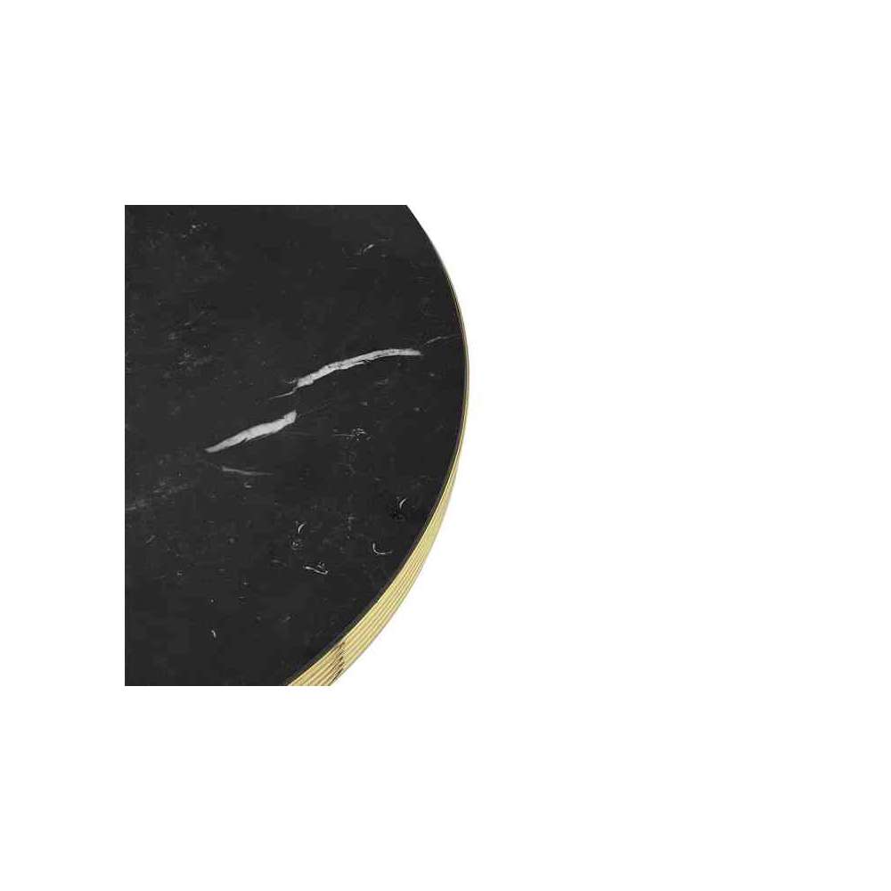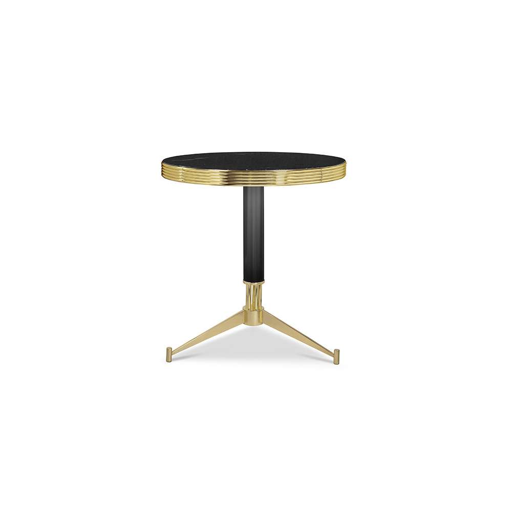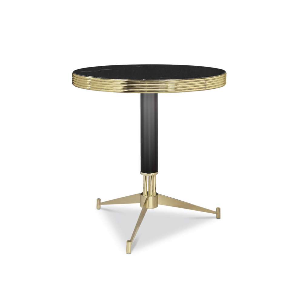 Dolly to stół bistro z połowy wieku, inspirowany stylem francuskim, bardzo popularnym w latach dwudziestych Belle Epoque. Posiada piękny marmurowy blat nero marquina i tradycyjną orkiestrę dętą, która obejmuje obrzeże stołu. Podstawa z trzema nogami jest wykończona pozłacanym mosiądzem i zaakcentowana czarnym lakierem na trzonie. Idealny dodatek do bistro, kawiarni, restauracji, hotelu czy wewnętrznego patio.