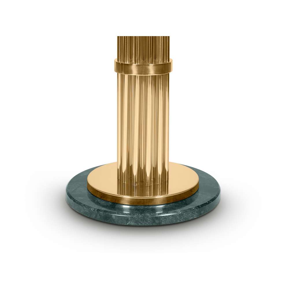 Janis to stół barowy inspirowany nowoczesnym designem z połowy wieku. Wykonany z marmuru verde guatemala i solidnej nogi z polerowanego mosiądzu, jest podtrzymywany przez okrągłą marmurową podstawę, a jego zielony odcień nadaje stołowi ponadczasowy wygląd. Może być używany jako stolik barowy, w salonie lub na vintage cocktail party.