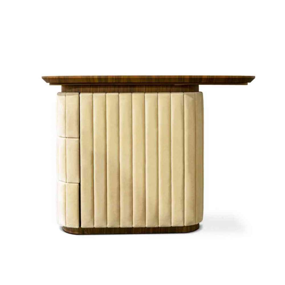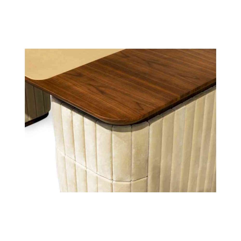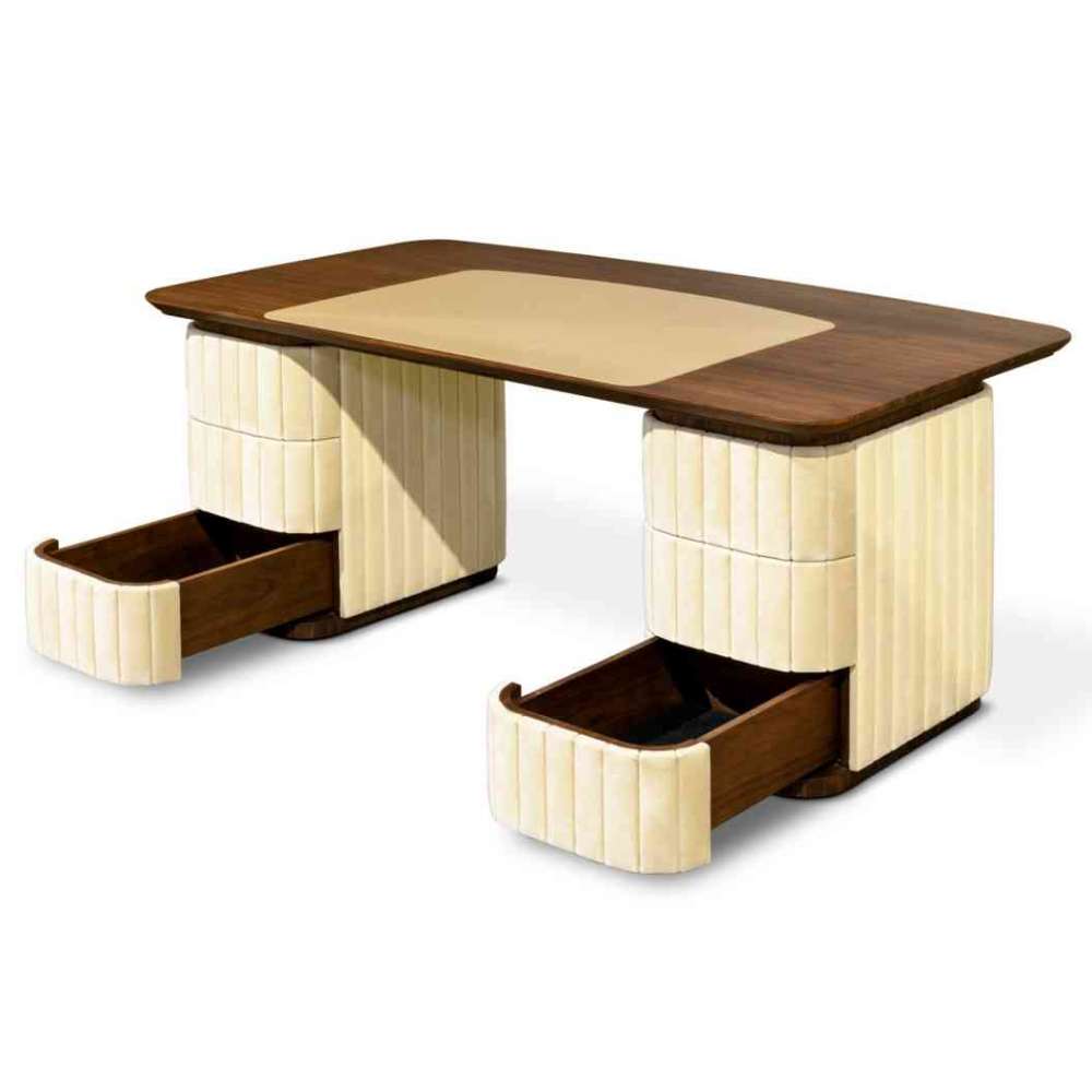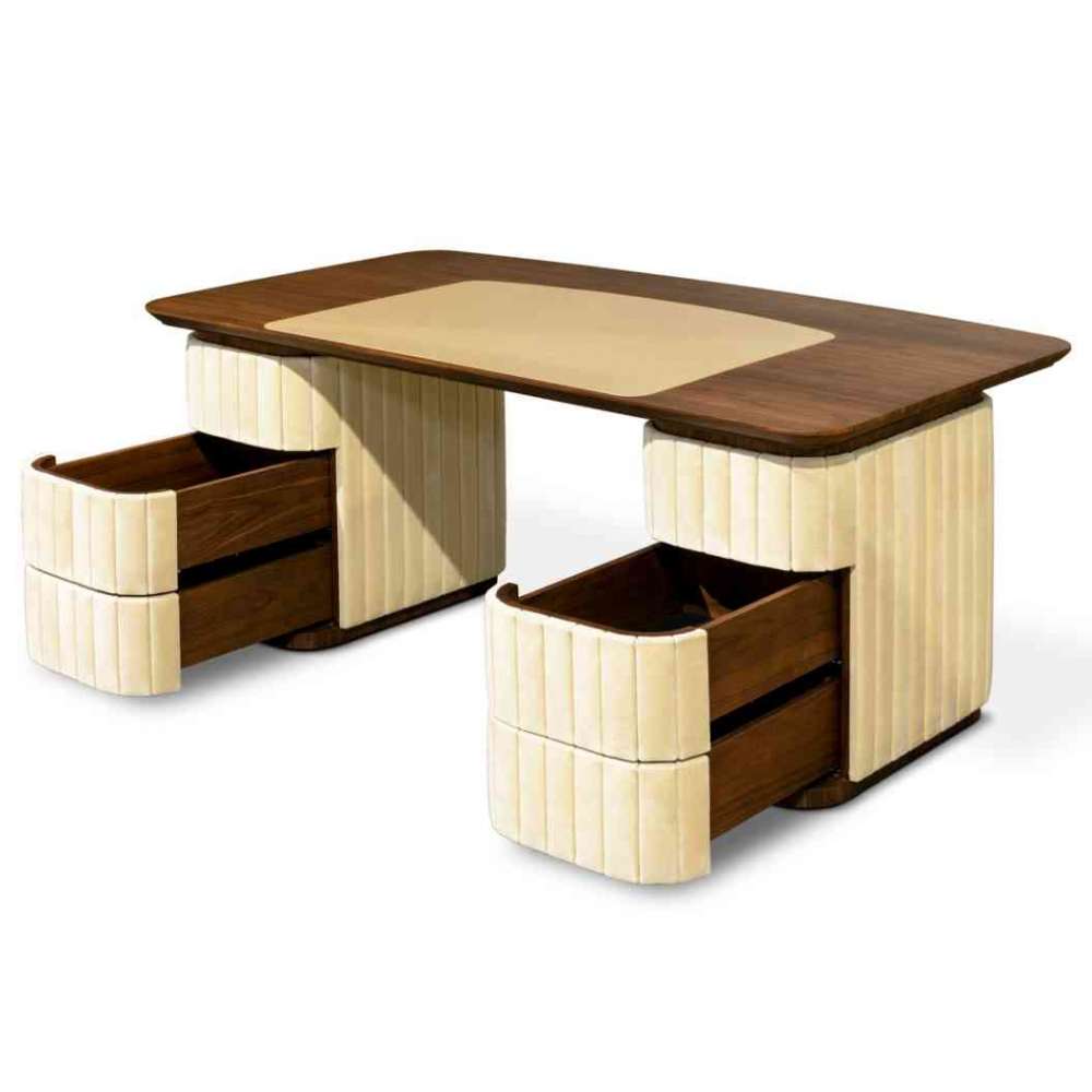 Biurko inne niż wszystkie, EDITH to oszałamiający przedmiot z połowy wieku z nowoczesnymi akcentami. To biurko jest wspaniałym dodatkiem do każdego domowego biura. Jego standardowe wzornictwo obejmuje piękny aksamit na korpusie biurka, a także blat z drewna orzechowego, który zapewnia ekskluzywny i niepowtarzalny wygląd. Jego krzywoliniowa bryła jest zarówno modna, jak i elegancka, dzięki czemu biurko EDITH jest jak każde inne.