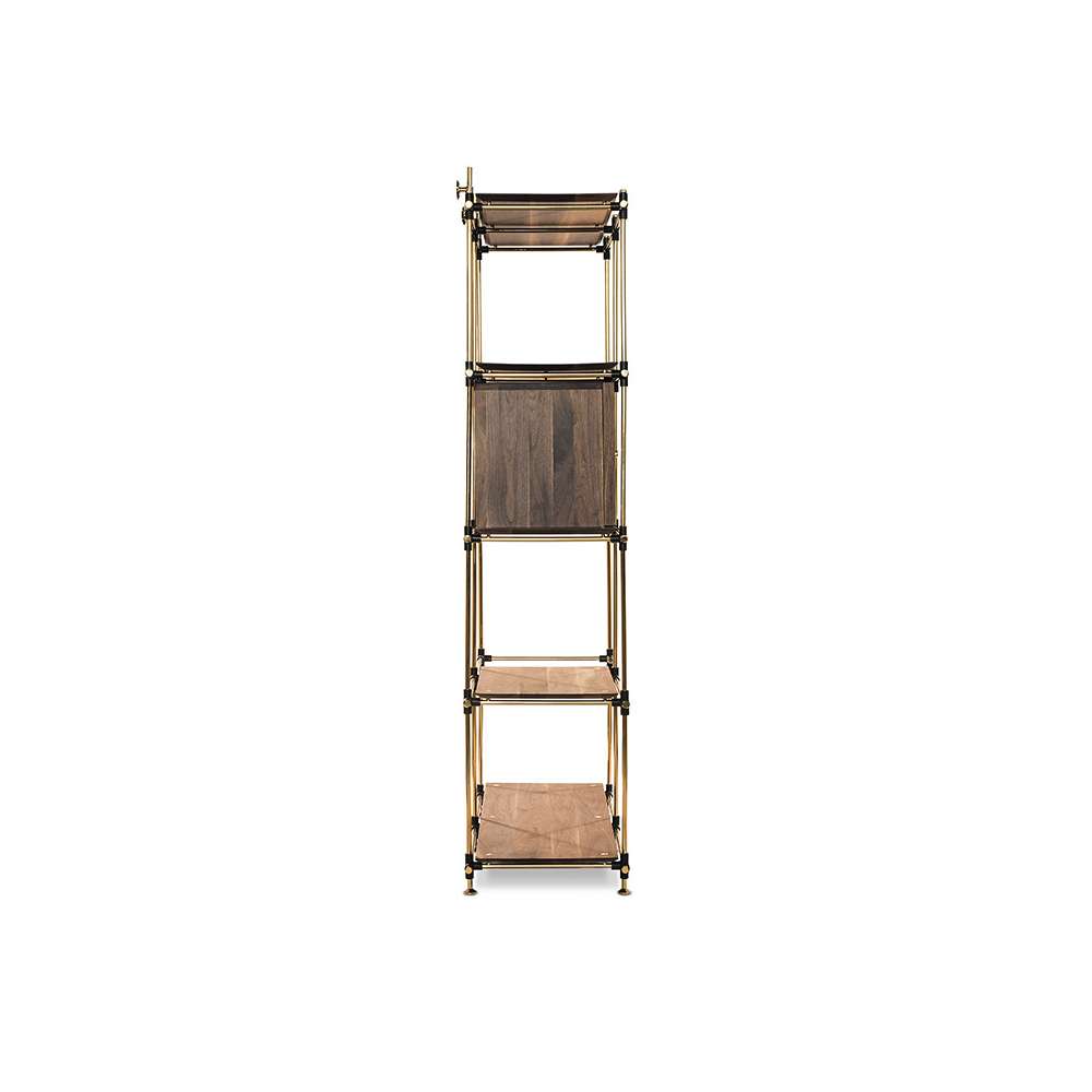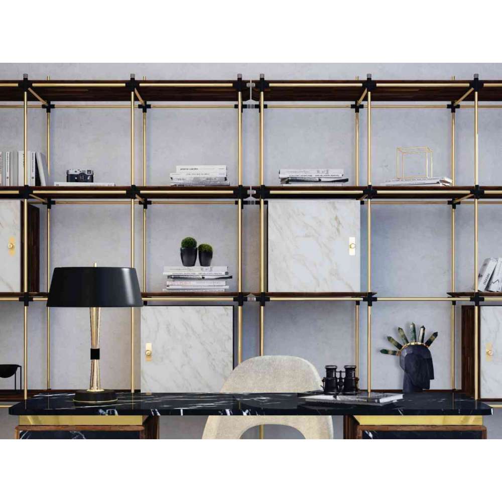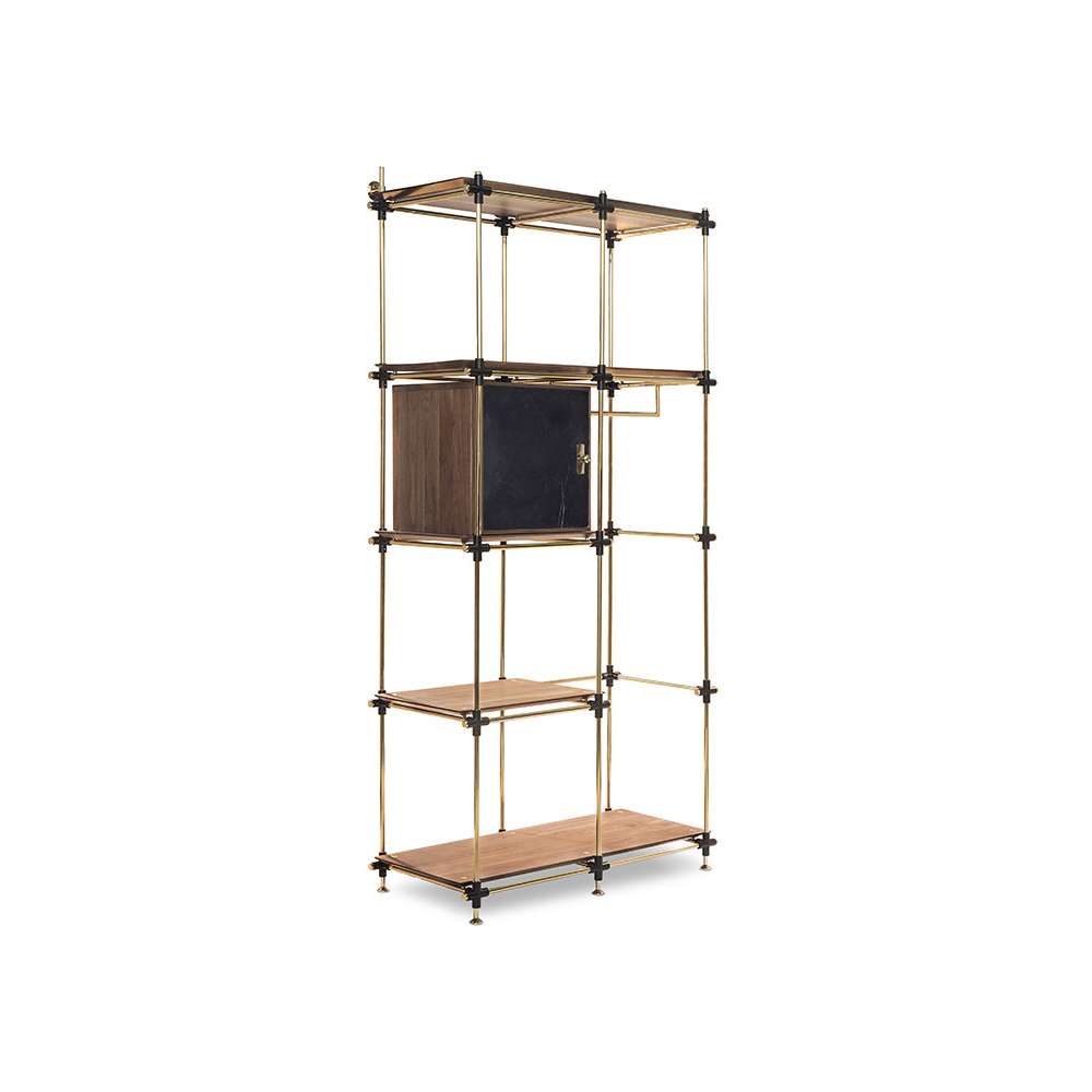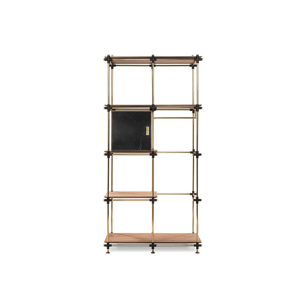 Blake to modułowy system regałów, który można łatwo dostosować do dowolnych potrzeb. Specjalnie wykonane marmurowe drzwi nero marquina mają lekki rdzeń, który zapewnia solidność. Ta rażąca modułowa konstrukcja z mosiądzu i drewna orzechowego tworzy oszałamiającą kombinację materiałów i know-how.
