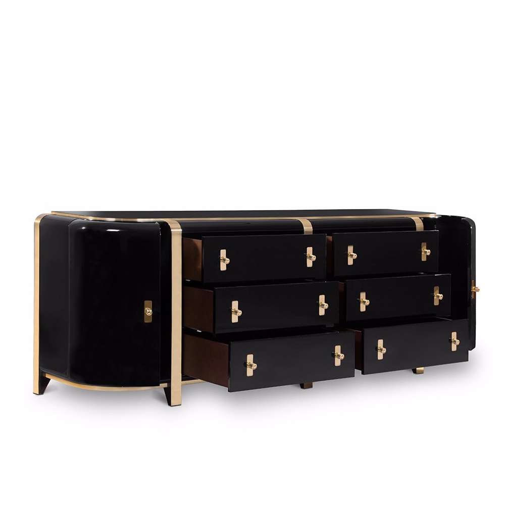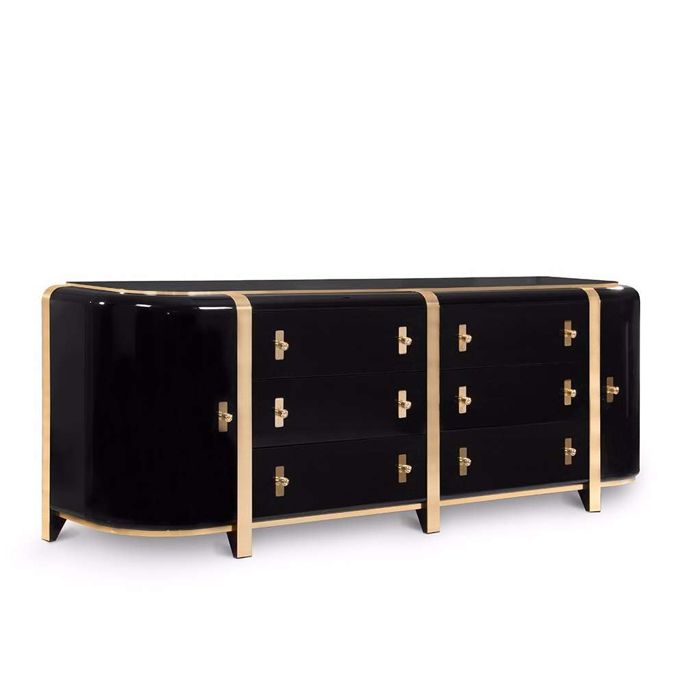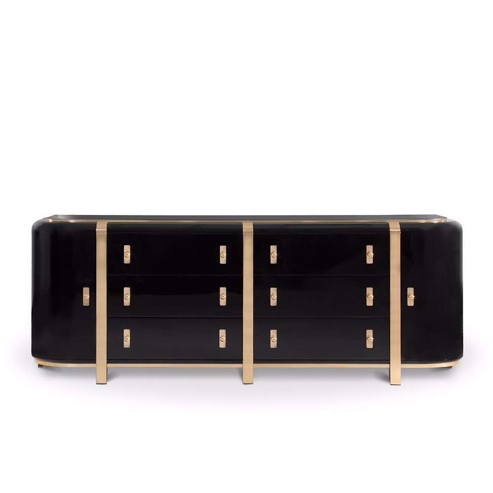 Kahn to kredens, który wprowadzi silną prezencję do Twojego salonu. Zainspirowany monumentalnym i monolitycznym stylem Louisa Kahna, jest produkowany z czarnej topoli, rodzaju topoli, oraz mosiężnych listew ułożonych symetrycznie, aby zapewnić ogólne poczucie jedności i formy. Drewniane wnętrze jest przeszklone delikatnym odcieniem karmelu, co daje wspaniały efekt, gdy otwierasz szuflady.