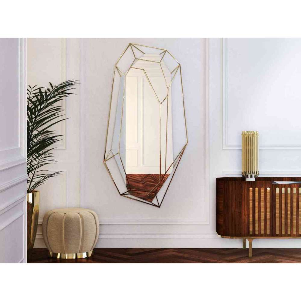Diamentowe Lustro ścienne to pełnowymiarowa wersja lustra w kształcie rombu. Wykonany z polerowanej mosiężnej struktury, tworzy wysoki, elegancki design, łącząc geometrię i projekt w tym samym obiekcie. Ten niesamowity mebel doda luksusowego i bogatego elementu do każdego wnętrza.