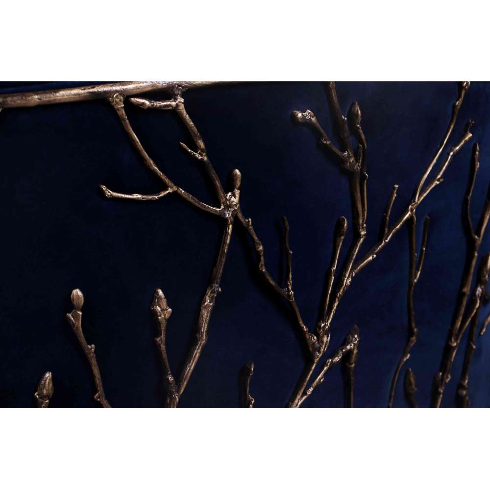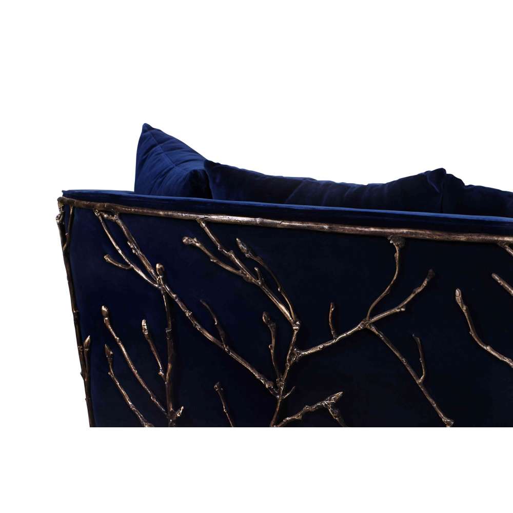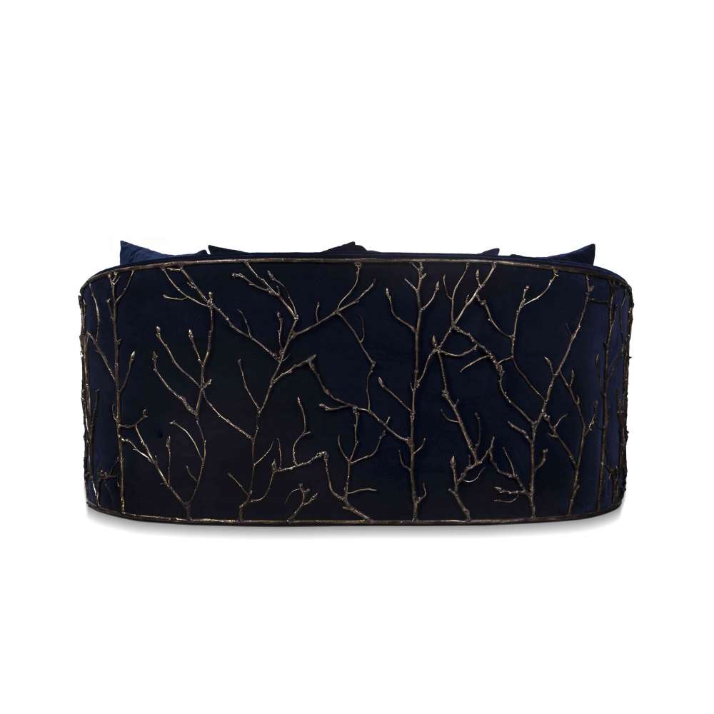 Dzięki tej sofie nasi rzemieślnicy po mistrzowsku uchwycili ponętną esencję zaczarowanego lasu. Jego antyczna pozłacana struktura przypominająca gałąź nie może nie zahipnotyzować patrzącego. Jej w pełni tapicerowane ciało wyskakuje jako tło dla błyszczącej, fantazyjnej ramy gałęzi.