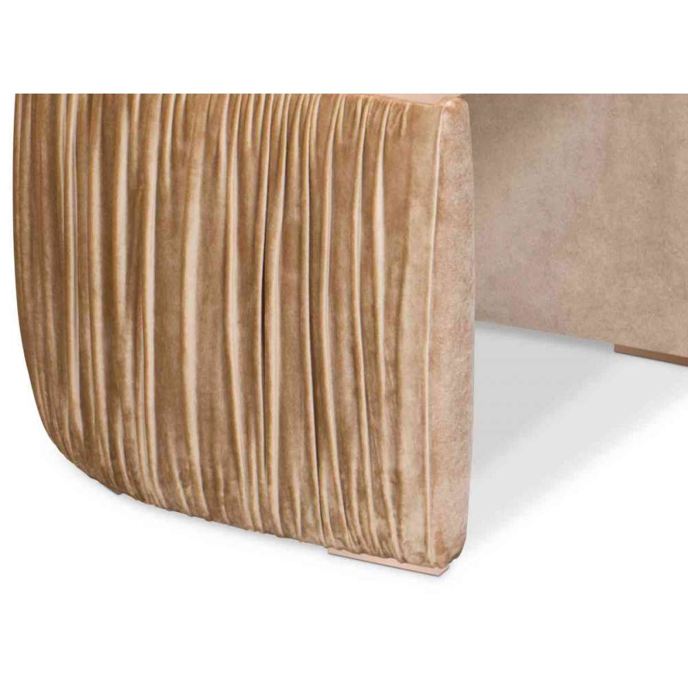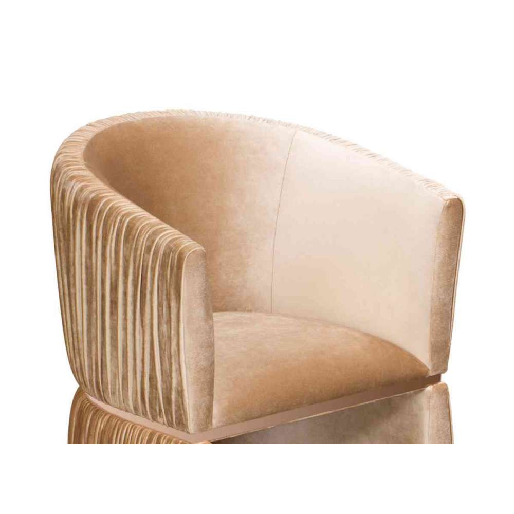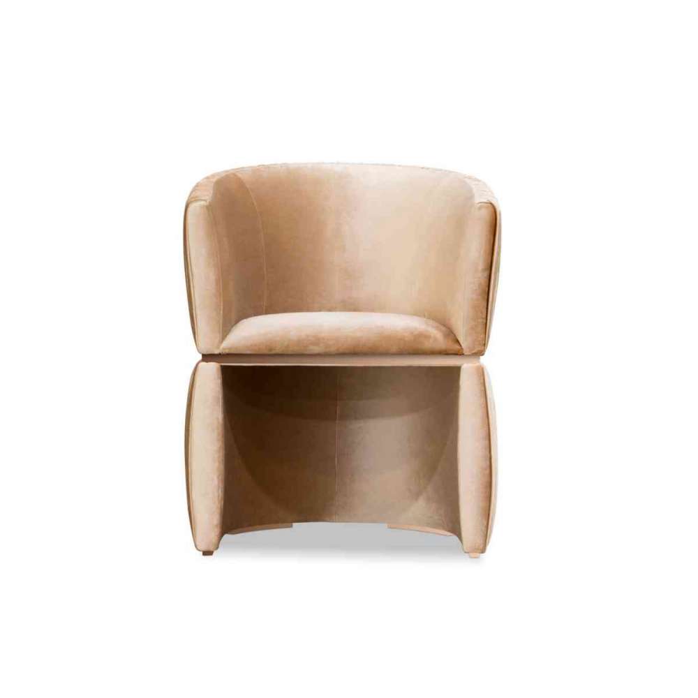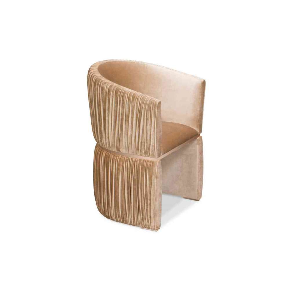 Zainspirowany klasycznym stylem bransoletki mankietowej, elegancki, zakrzywiony kształt krzesła Cuff wygodnie obejmuje gości. Wspaniałe fałdy marszczonej tkaniny owijają obudowę krzesła, a stylowa polerowana opaska mosiężna spina jego talię.
